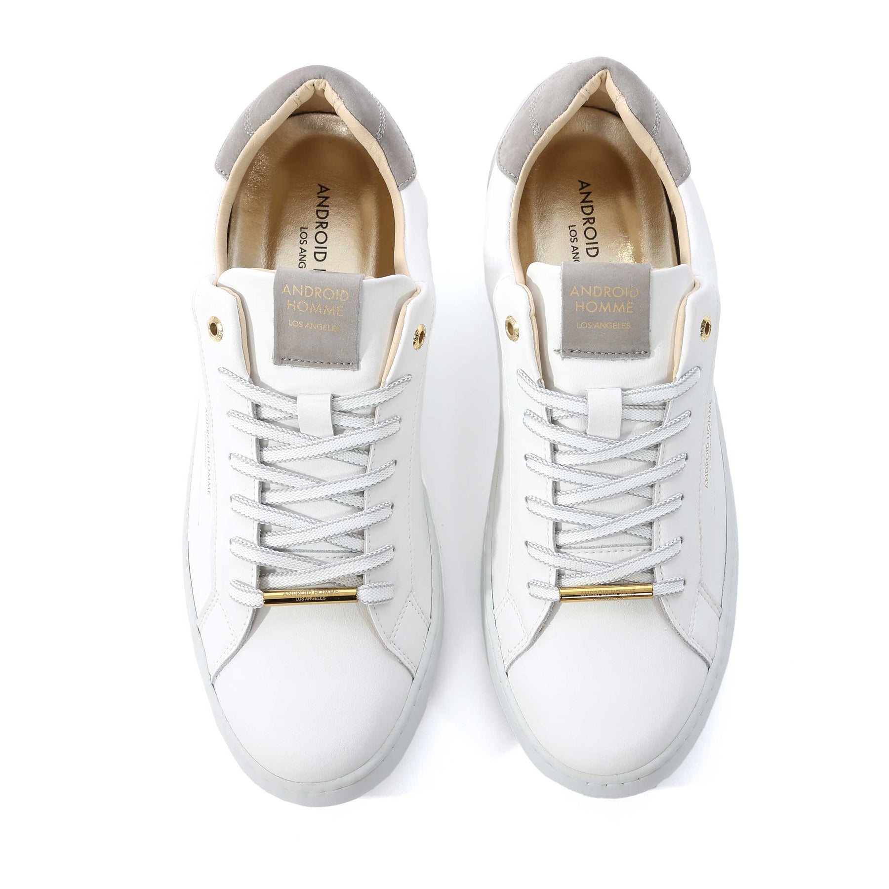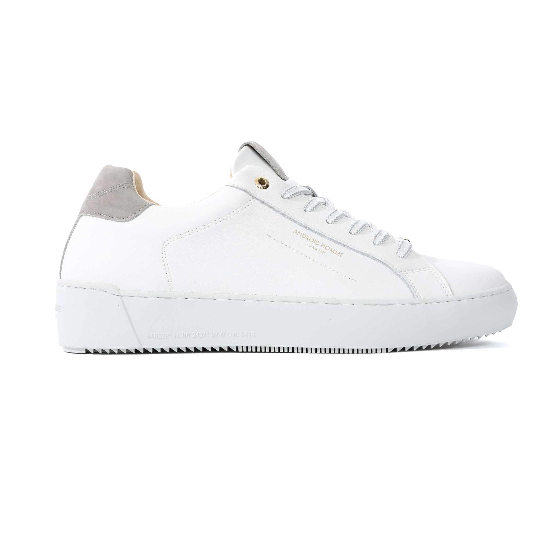 Android Homme Zuma Nubuck Heel Trainer in White. Crafted with meticulous attention to detail, this trainer combines style and comfort, making it the perfect addition to your casual wardrobe. The Android Homme Zuma trainers are designed with a premium leather upper, offering a smooth and sleek appearance. The standout feature is the nubuck suede heel and tongue panels, which gives the trainer a unique flair.