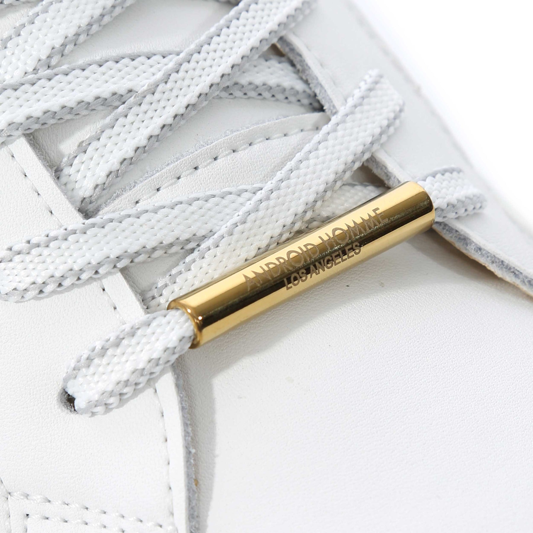 The design of the Android Homme Zuma Nubuck Heel Trainer in White is both subtle and sophisticated. With 7-hole eyelets, these trainers not only provide a secure fit but also allow for personalisation in lacing, ensuring comfort suitable for all-day wear. The iconic Android Homme logo tab adds a touch of brand recognition, while the printed logo on the side panel reinforces the premium quality associated with the brand.