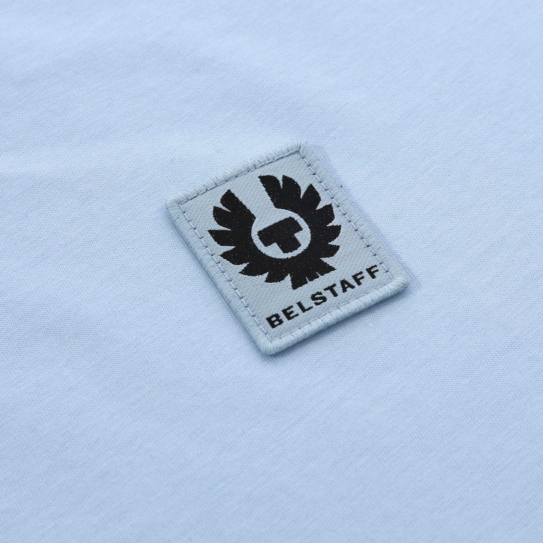 Belstaff Classic T Shirt in Sky Blue. A classic crew neck, short sleeve t-shirt by Belstaff. A plain design t-shirt perfect for everyday wear. Finished with the Belstaff logo on the chest.