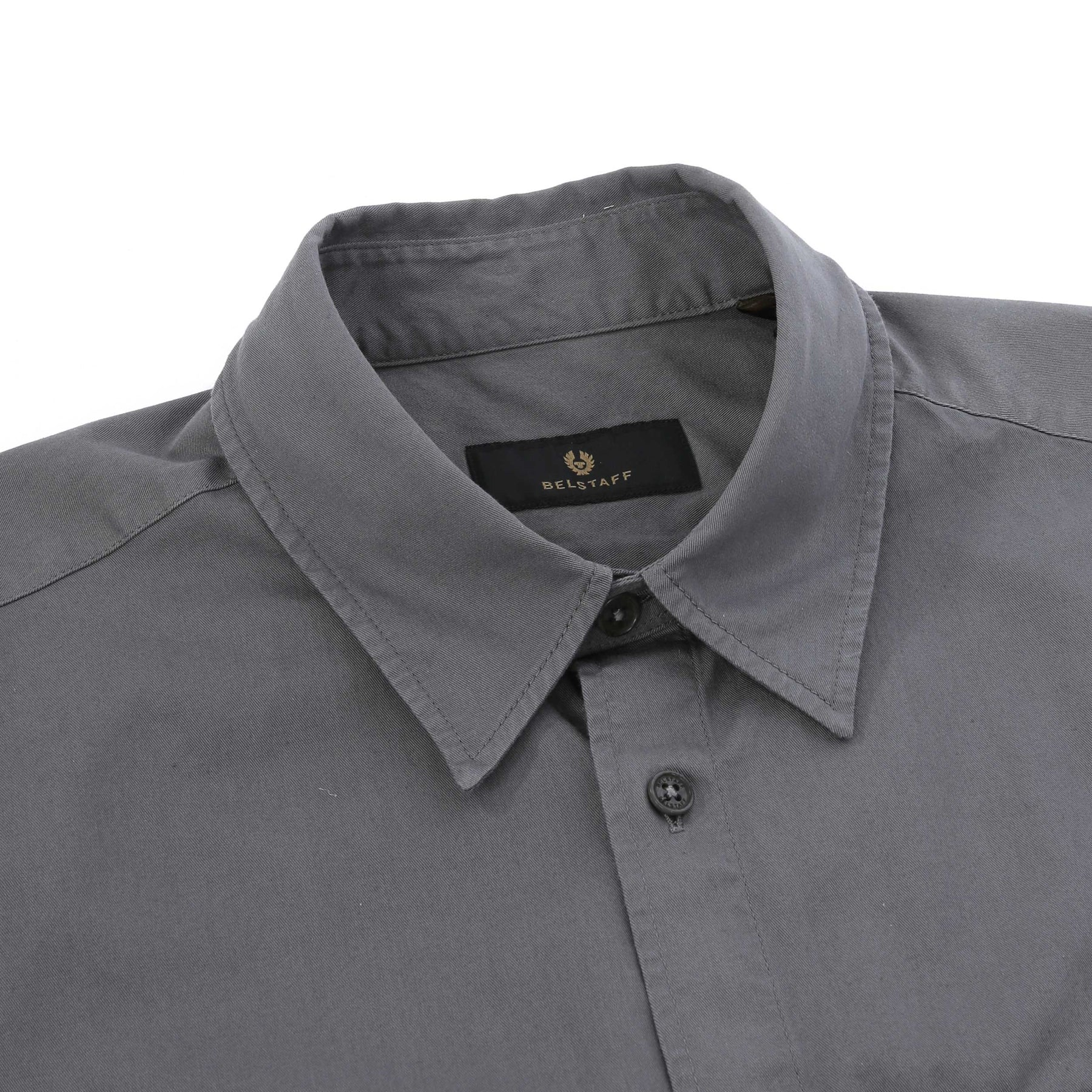 Belstaff Scale Shirt in Tornado Grey. A casual regular fit shirt by Belstaff. Crafted from a cotton twill, this shirt features a full button fastening placket and a tilted front pocket. Finished with the Belstaff logo on the left sleeve. Perfect shirt to layer up with a Belstaff t-shirt.