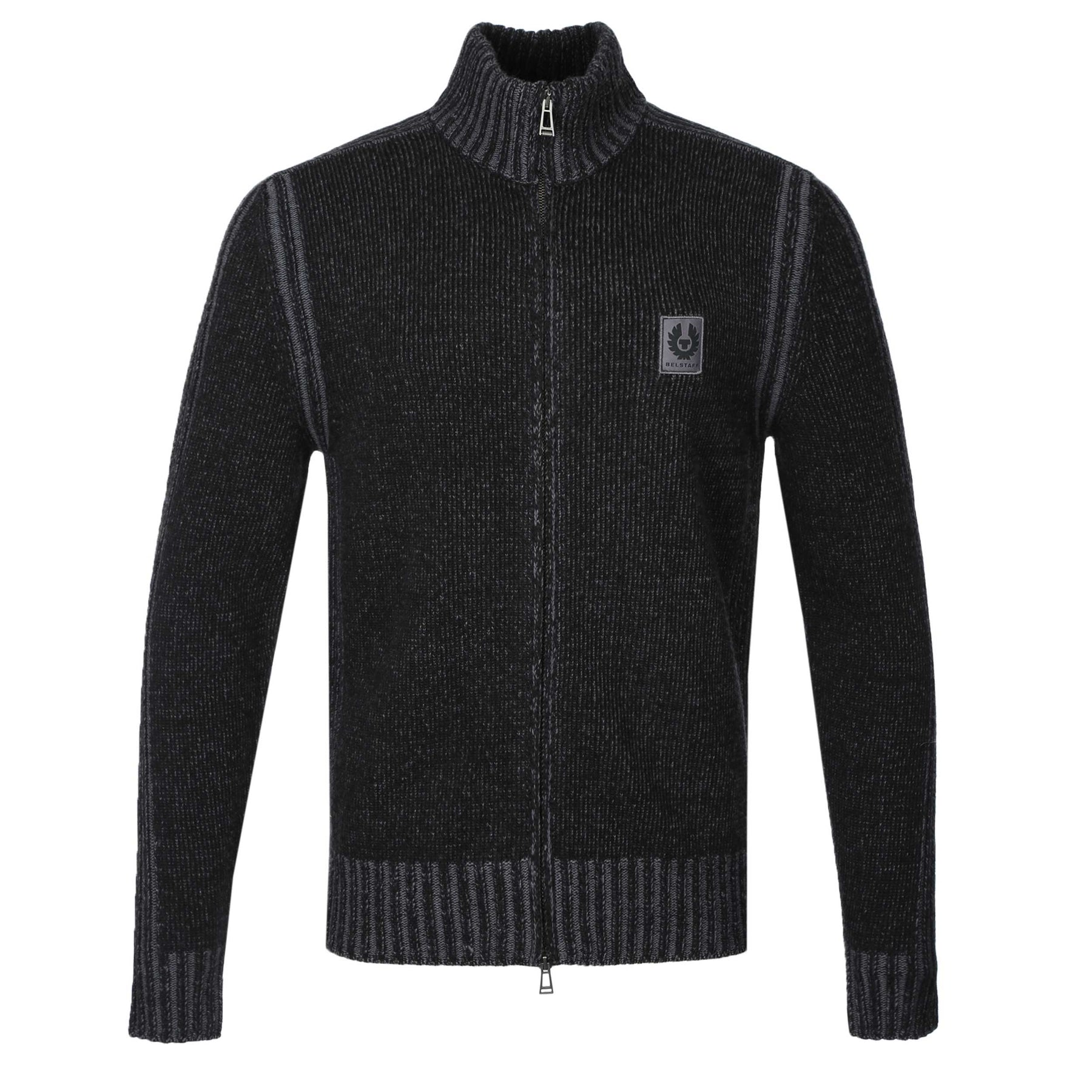 Belstaff Seasonal Watch Full Zip Knitwear in Black & Tornado Grey