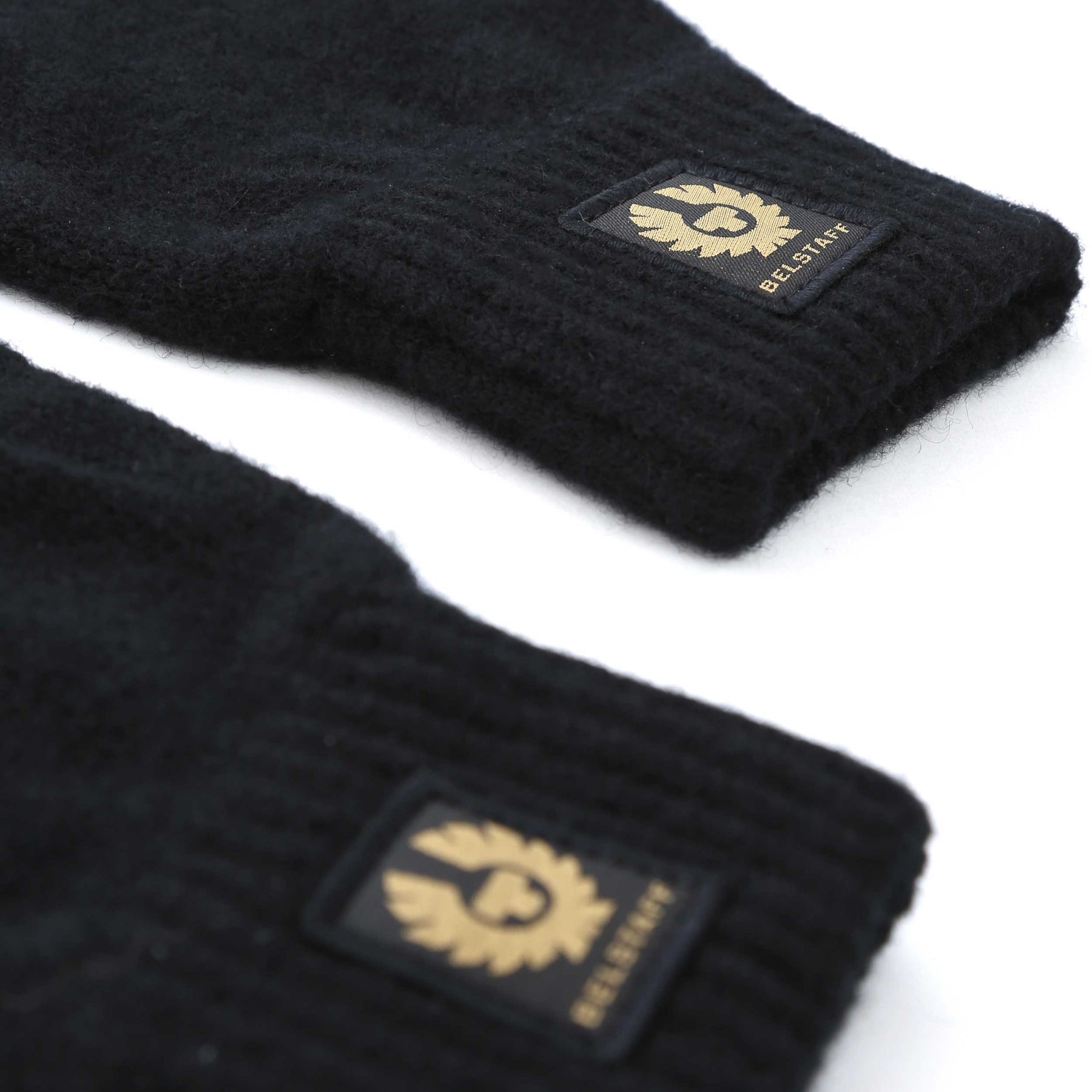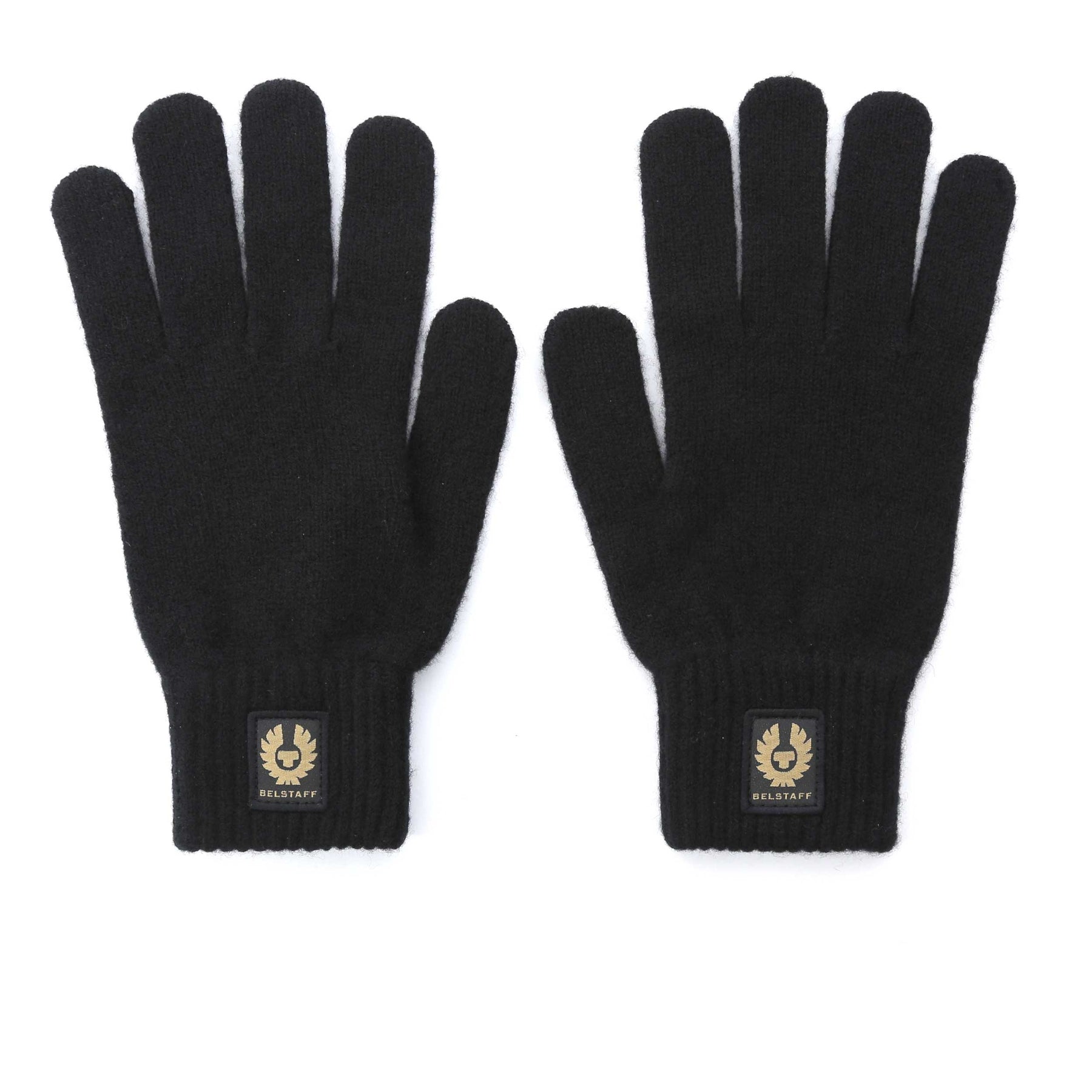 Belstaff Watch Gloves in Black. A classic style glove by BOSS. Crafted from 100% wool in a plain design. Ribbed cuff. Belstaff logo badge to the glove. One size fits all glove!