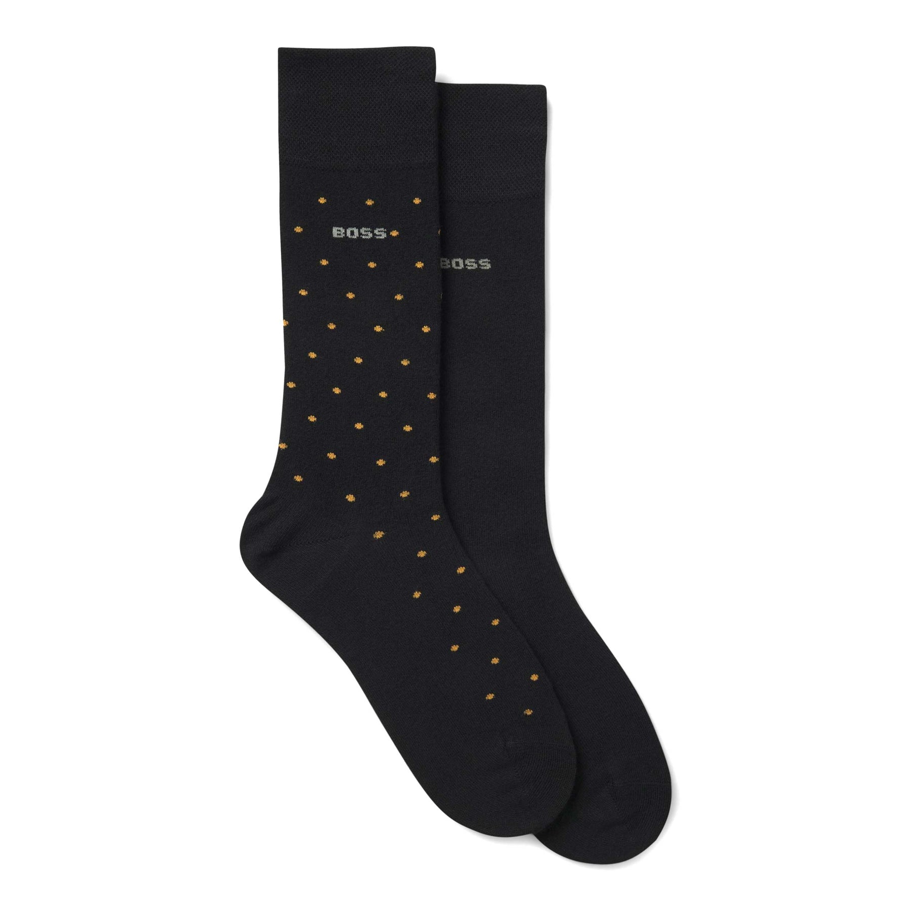 BOSS 2P RS Mini Dot VI Bambo Socks in Black. A classic two pack of socks by BOSS. This twin pack includes one plain black sock and one with mini dot design all over branding.