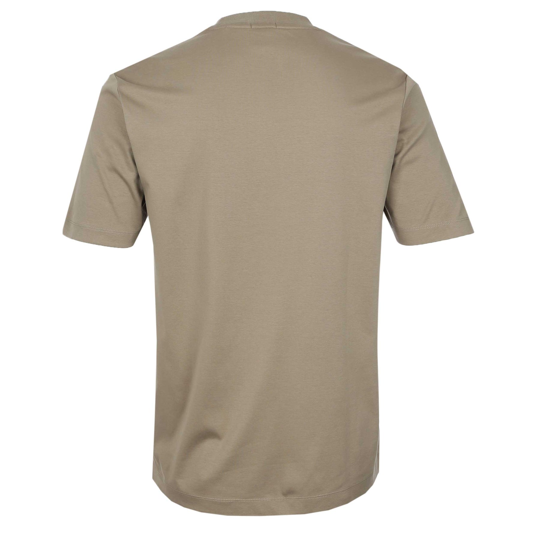 BOSS C Taut 01 T Shirt in Open Brown. A classic t-shirt by BOSS. Short sleeves and crew neck. Plain design t shirt with a tonal leather patch with metal monogram logo badge. Ribbed neck line. Finished with a BOSS logo tab to the waist. The perfect everyday t-shirt.