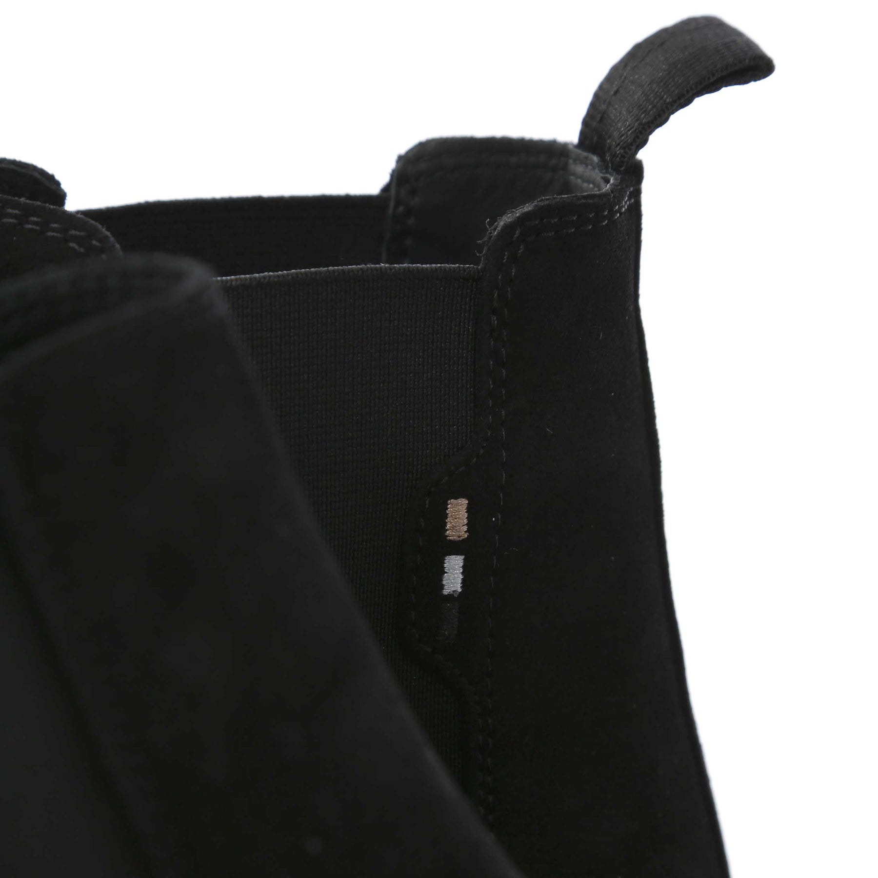BOSS Calev Cheb sdfb Boot in Black. A classic chelsea boot by BOSS. These plain suede leather boots come with an elasticated, tonal branded side panels and a loop pull to the heel. Embossed BOSS logo to the topline. Ideal BOSS boot for those smart casual days. Team up with a pair of BOSS jeans.