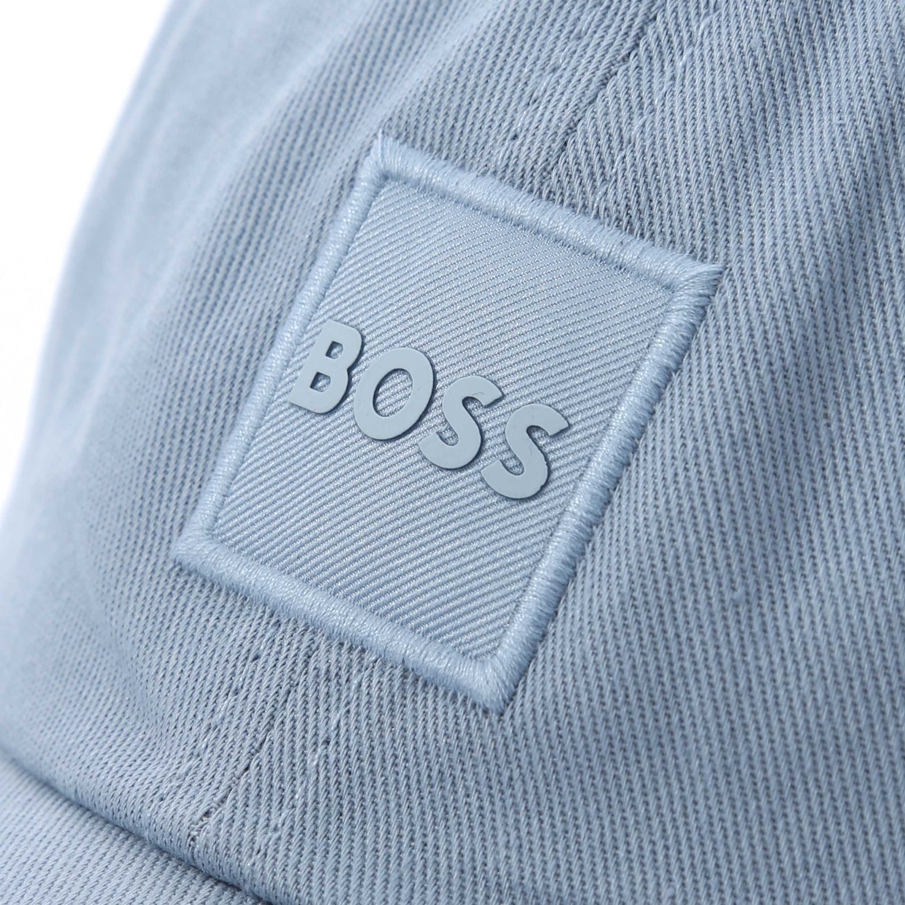 BOSS Derrel PL Cap in Light Pastel Blue. Cap by BOSS. Plain design cap with a tonal BOSS branded badge to the front. Tonal stitched eyelets for ventilation. Adjustable Velcro fastening to fit all sizes.