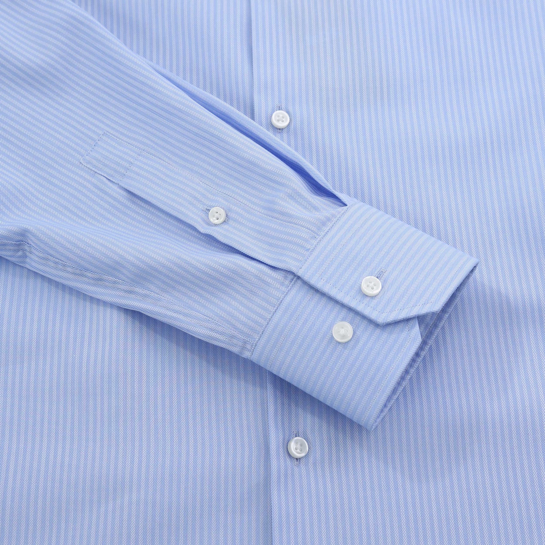 BOSS H Hank spr B1 C1 253 Shirt in Light Pastel Blue. A long sleeve BOSS shirt in a slim fit. Featuring a full button fastening and a contrasting stripe design throughout. Crafted from a soft performance stretch material, designed for movement and breathability. Treated with an easy-iron finish.