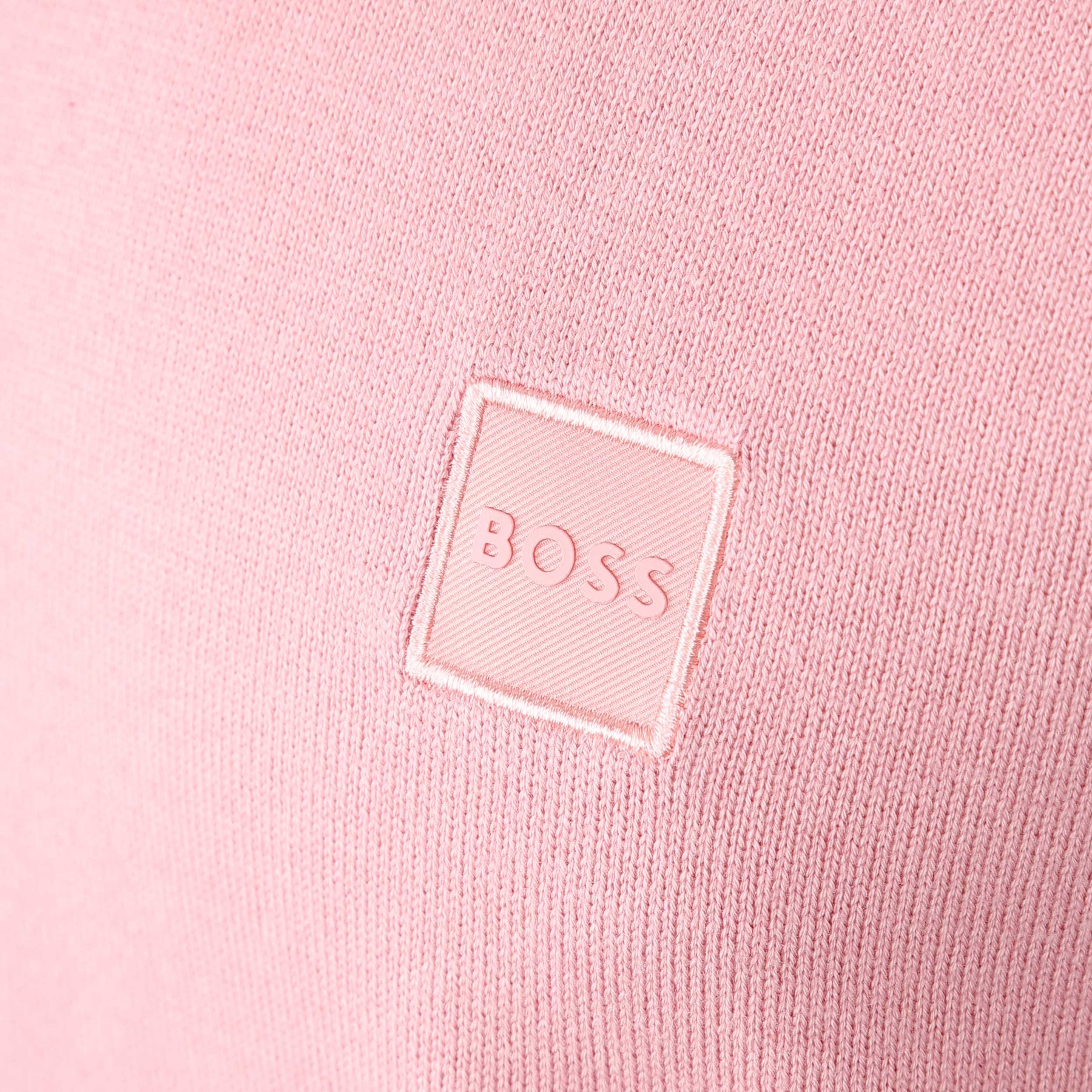 BOSS Kanovano S Knitwear in Pink. A classic piece of knitwear by BOSS. This jumper is a regular fit with crew neck and long sleeves. It has ribbed cuffs, cuts to a regular length and is detailed with a tonal BOSS square logo on the chest.