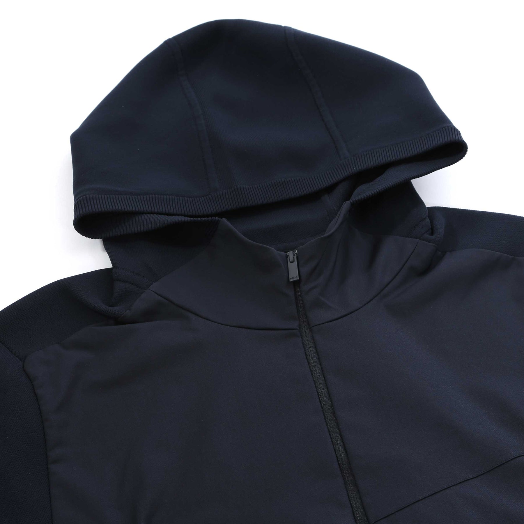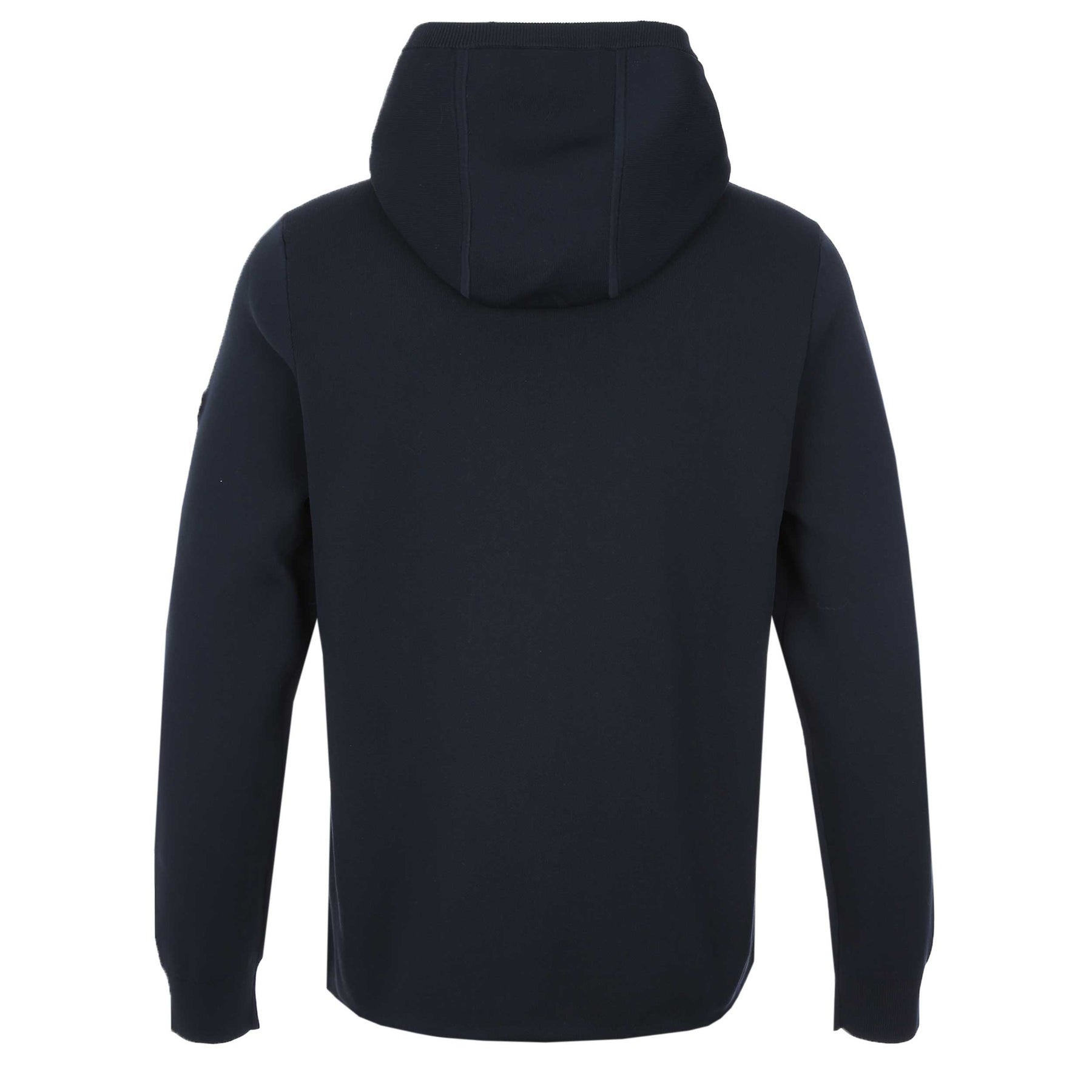 BOSS P Imatteo Hybrid Jacket in Dark Blue. A classic jacket by BOSS. This jacket is a regular fit and has full zip fastening. Contrasting polyester front panel design. Tonal knitted sleeves and back panel. Gore-tex engineering to protect you from the elements. Two zip fastening pockets to the front of the jacket. Detailed with a BOSS logo badge to the left sleeve. Ribbed trims to the cuffs and hood.