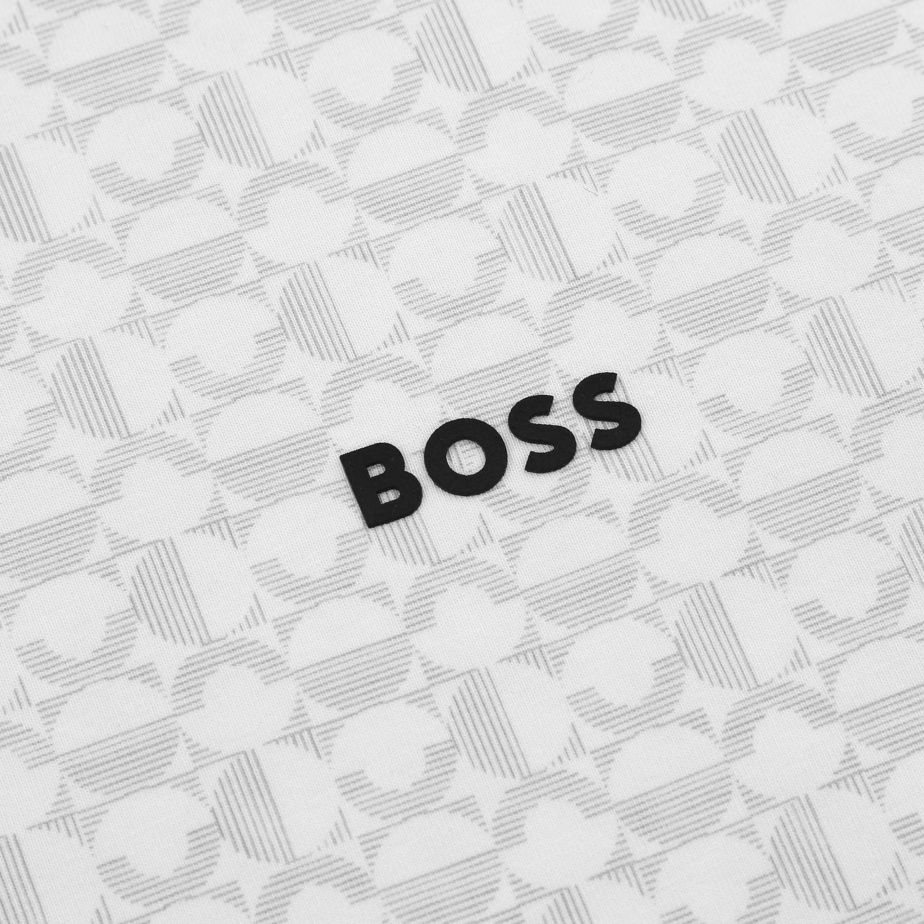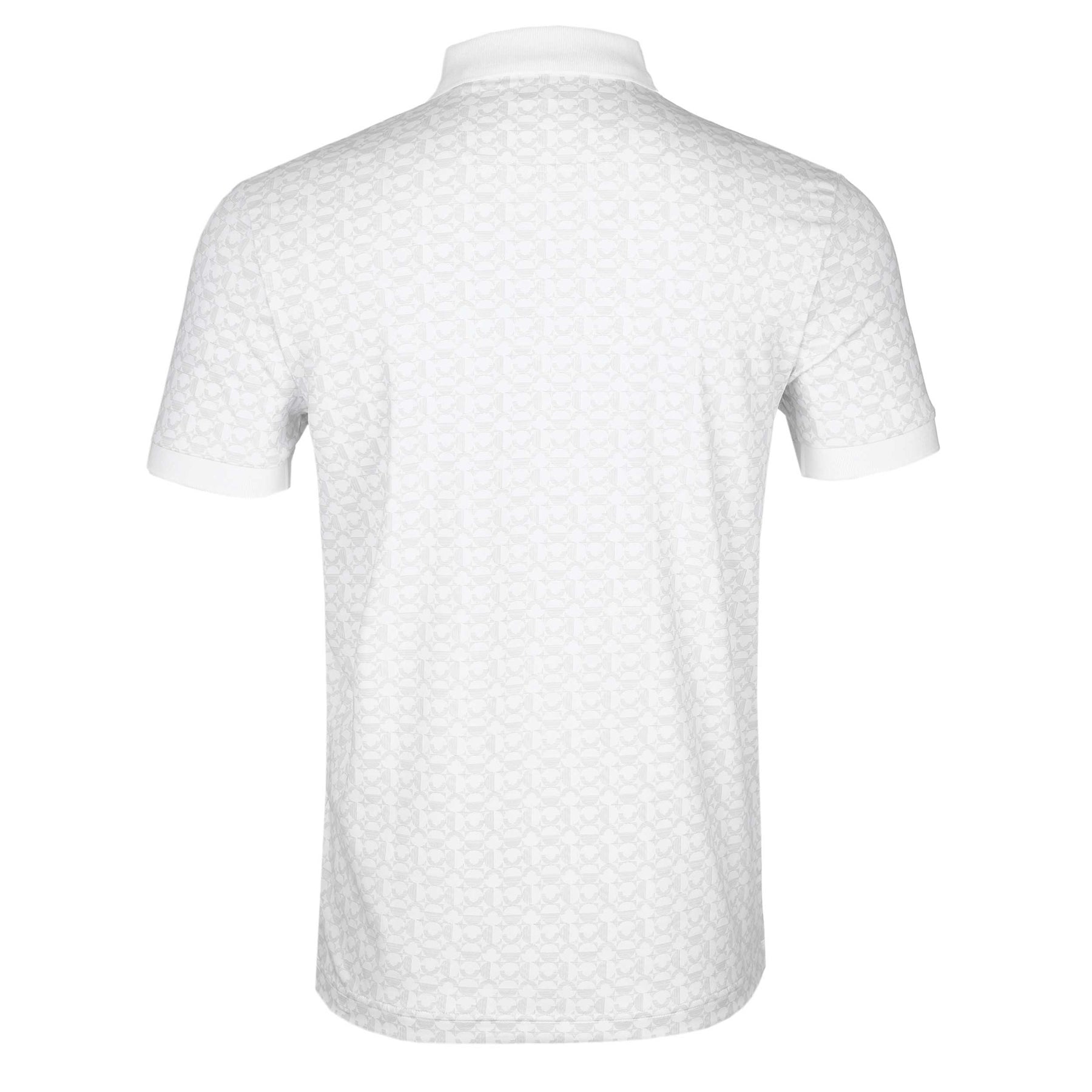 BOSS Paddy Striped C Polo Shirt in White. A classic Hugo Boss polo shirt in a regular fit. A 3 button fastening placket with a tonal colour printed BOSS logo to the chest. A stretch polo shirt with moisture management properties. Subtle needle stripe design to the polo shirt.