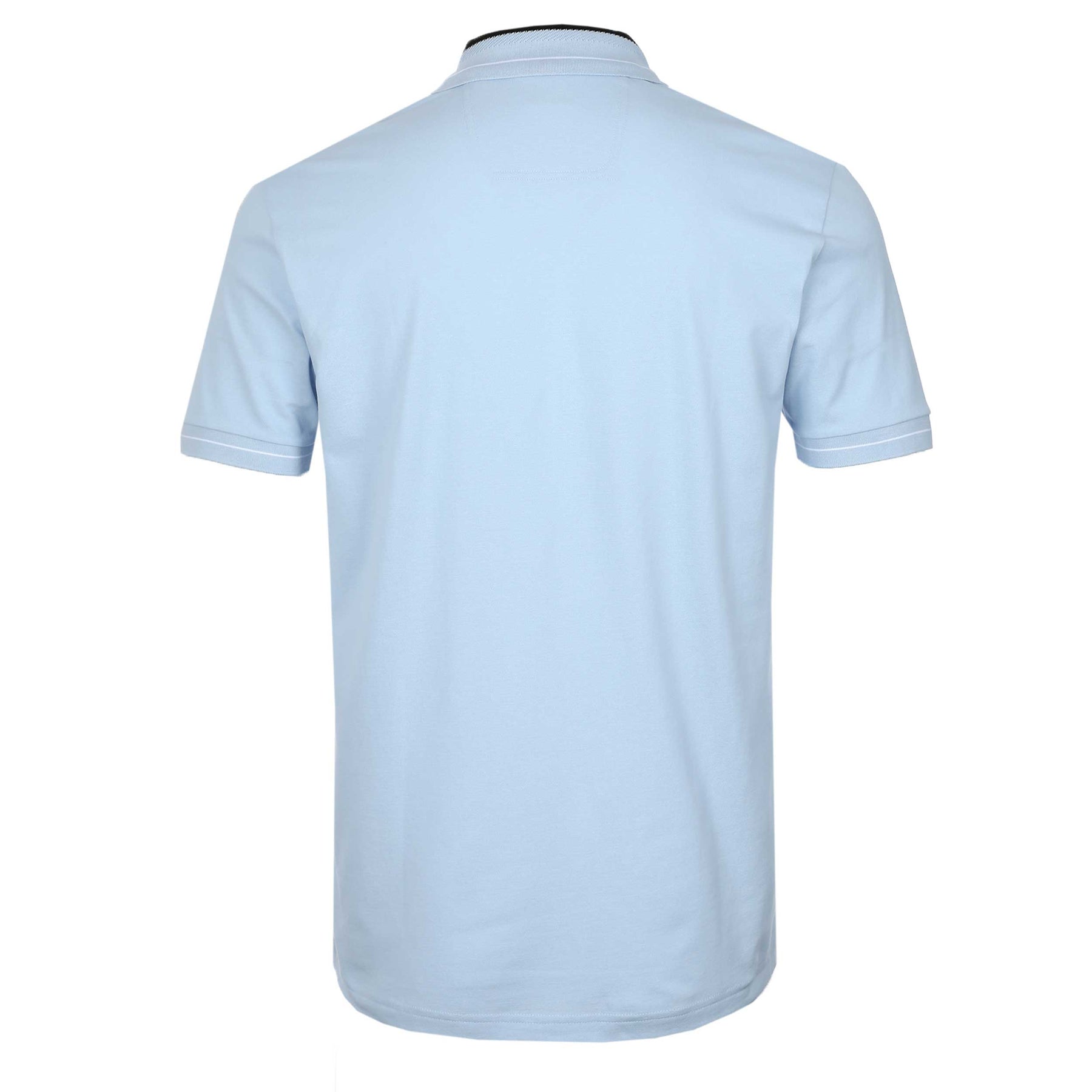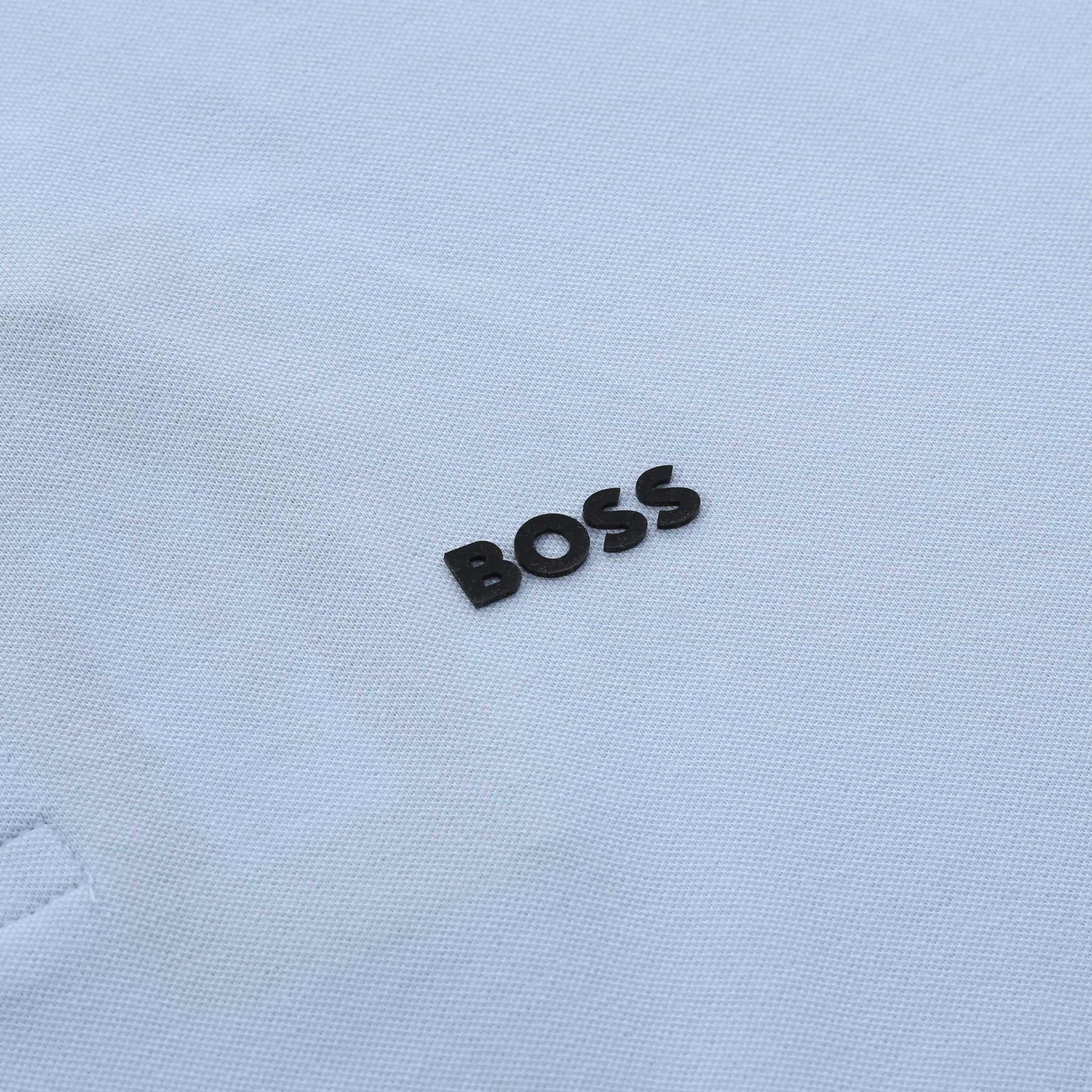BOSS PL Member Polo Shirt in Sky Blue. The BOSS PL Member Polo Shirt is built for performance, comfort and clean athletic style. Crafted from 100% cotton piqué, it offers breathable comfort and a structured feel that holds its shape throughout the day. Cut to a regular fit, this polo provides easy movement without losing its clean, tailored profile. Contrasting pinstripe design to the collar and cuffs. Flat-knit collar, two-button placket, and matching flat-knit cuffs for a sharp, considered finish.