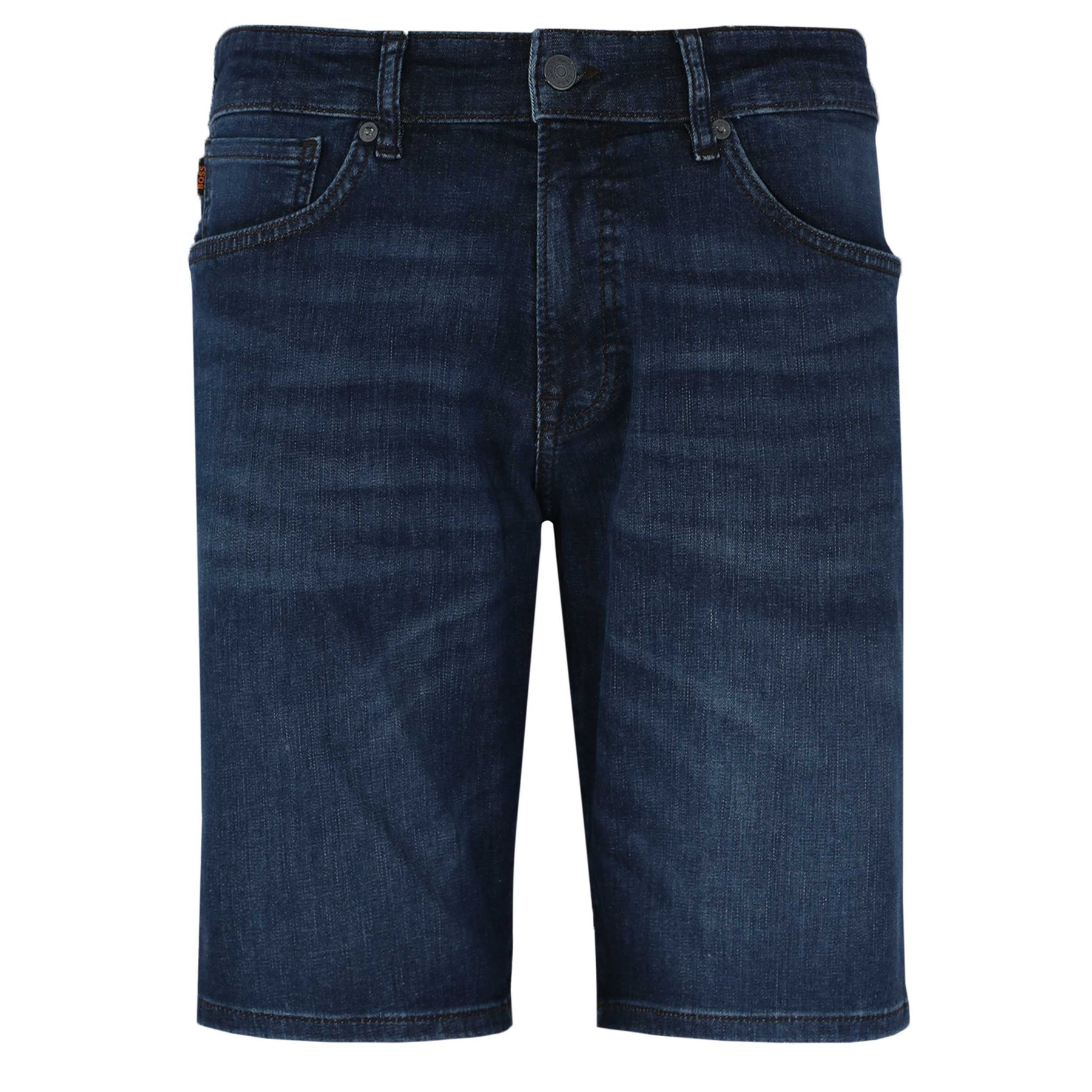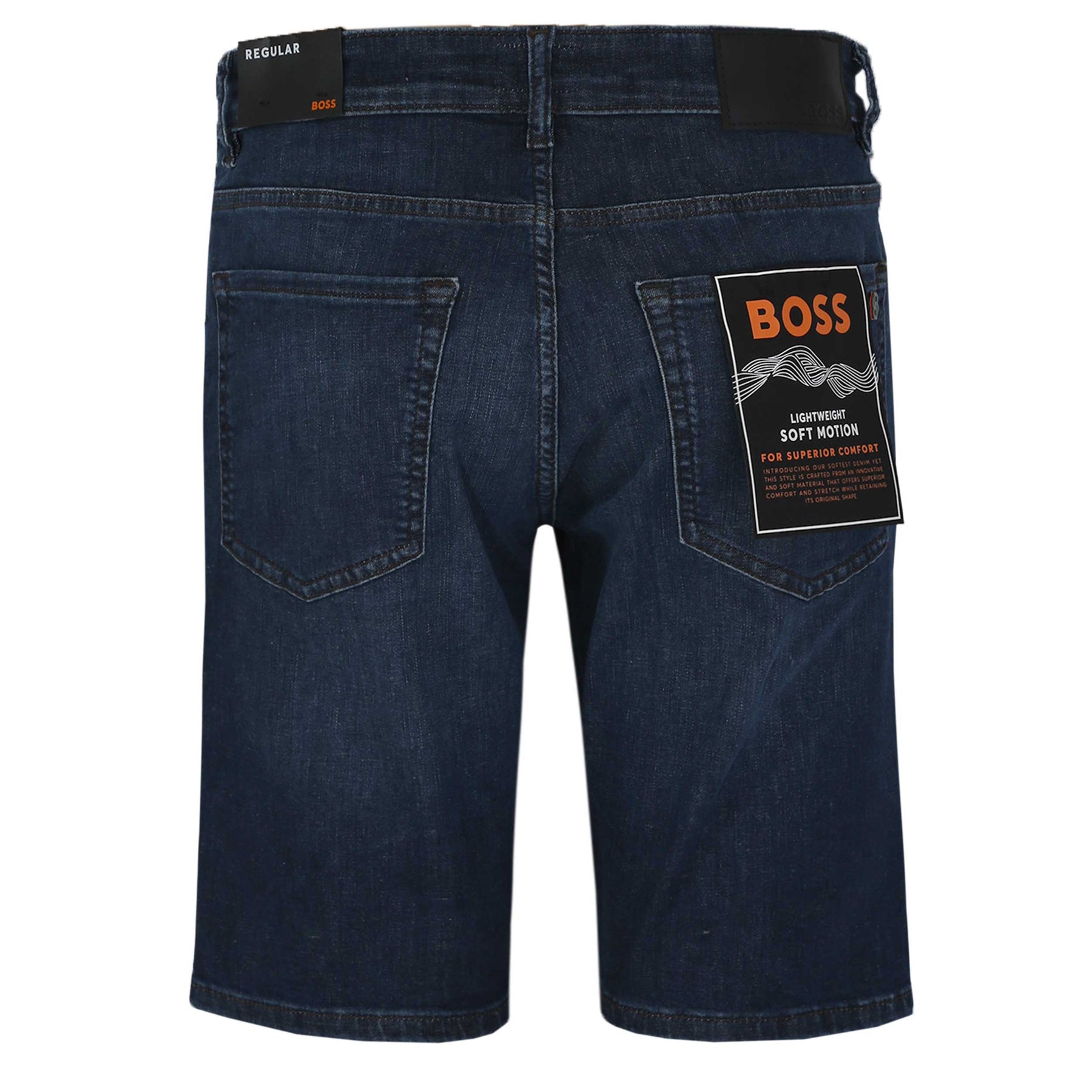 BOSS Re Maine Shorts BO Denim Short in Medium Blue. BOSS Delaware short arrives in a regular fit, made from a soft cotton with stretch for added comfort. It has a regular zip fly fastening with button to waistband. 5 pocket jean design shorts.