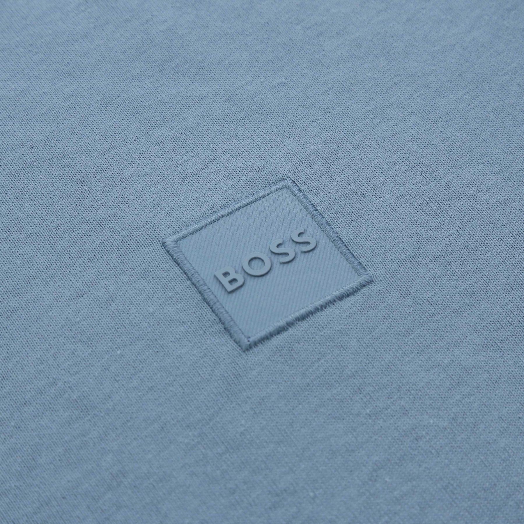 BOSS Tales T-Shirt in Light Pastel Blue. A classic T-Shirt by BOSS. This regular fit T-Shirt is easily worn and comfortable for everyday wear. It is detailed with a small tonal BOSS logo patch on the chest.