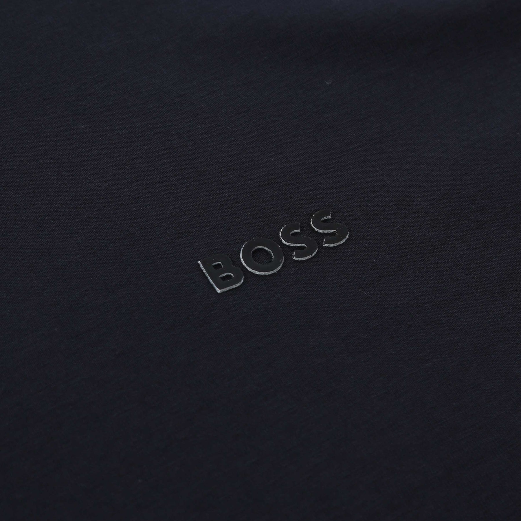 BOSS Tee T-Shirt in Dark Blue. Regular fit t shirt by BOSS. A classic crew neck, short sleeve t shirt design constructed from a stretch cotton. It features a raised rubber BOSS logo print. Ribbed neckline. The perfect t shirt for those casual days.