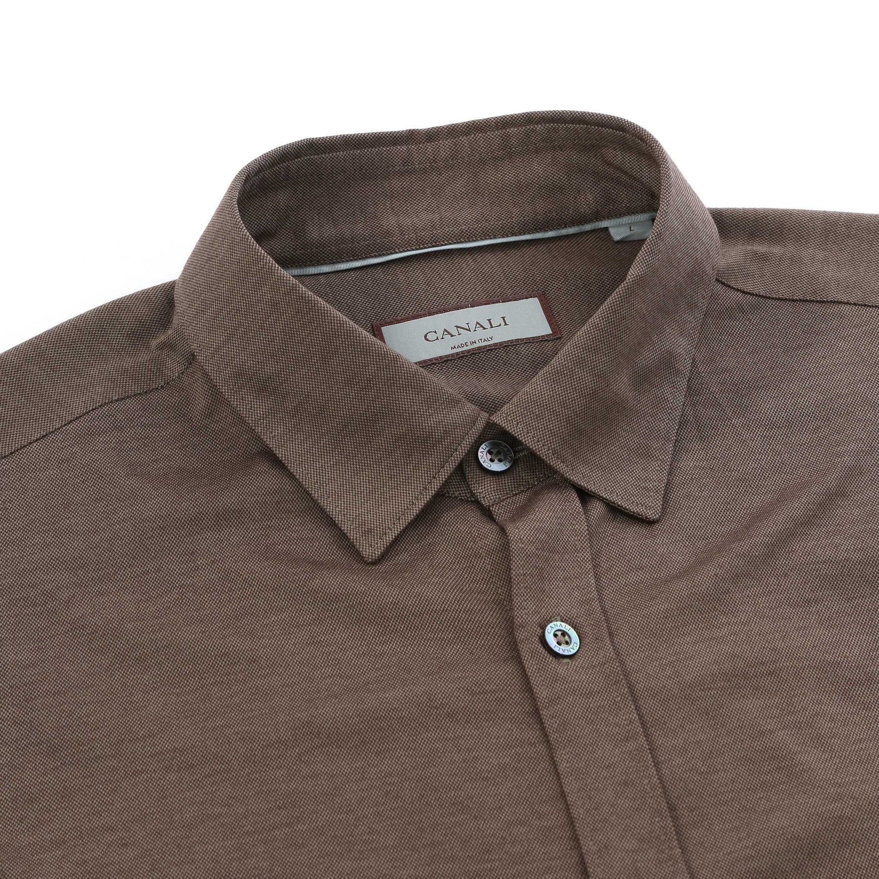 Canali Basic Stretch Shirt in Brown. Long sleeve shirt by Canali cut to a slim fit. This classic shirt arrives in a plain design with a full button fastening placket. Stretch properties to the shirt. Soft pointed collar.