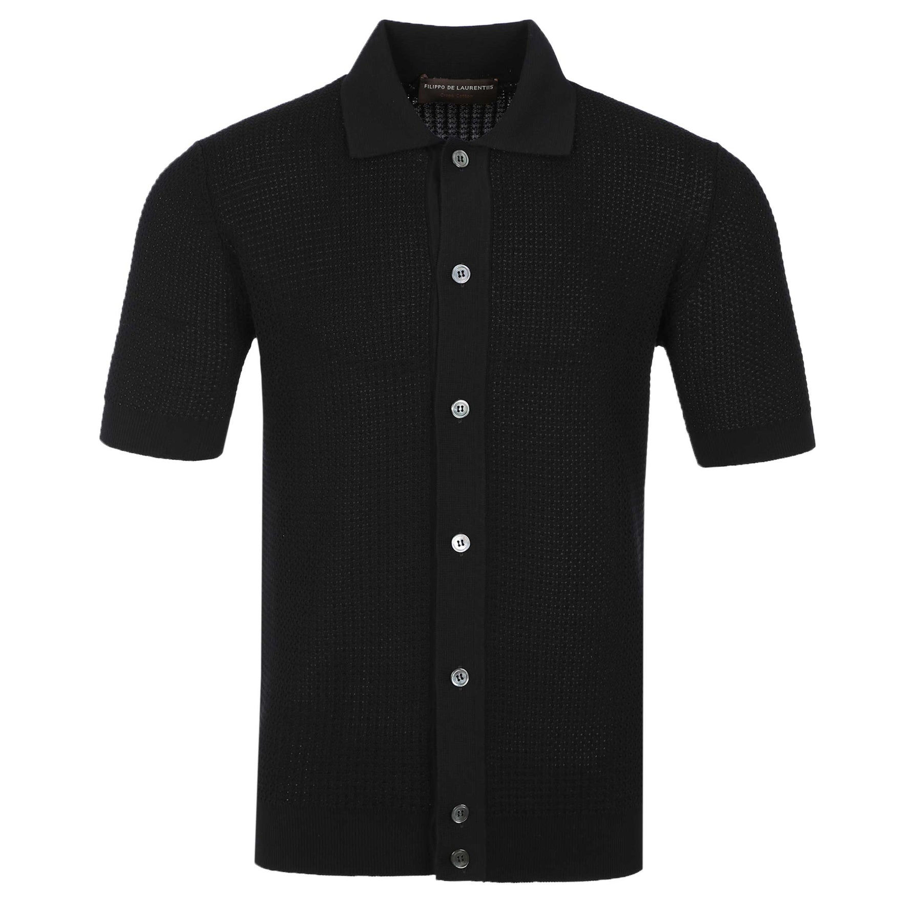 Filippo De Laurentiis Crepe Cotton Button Thru SS Shirt in Black