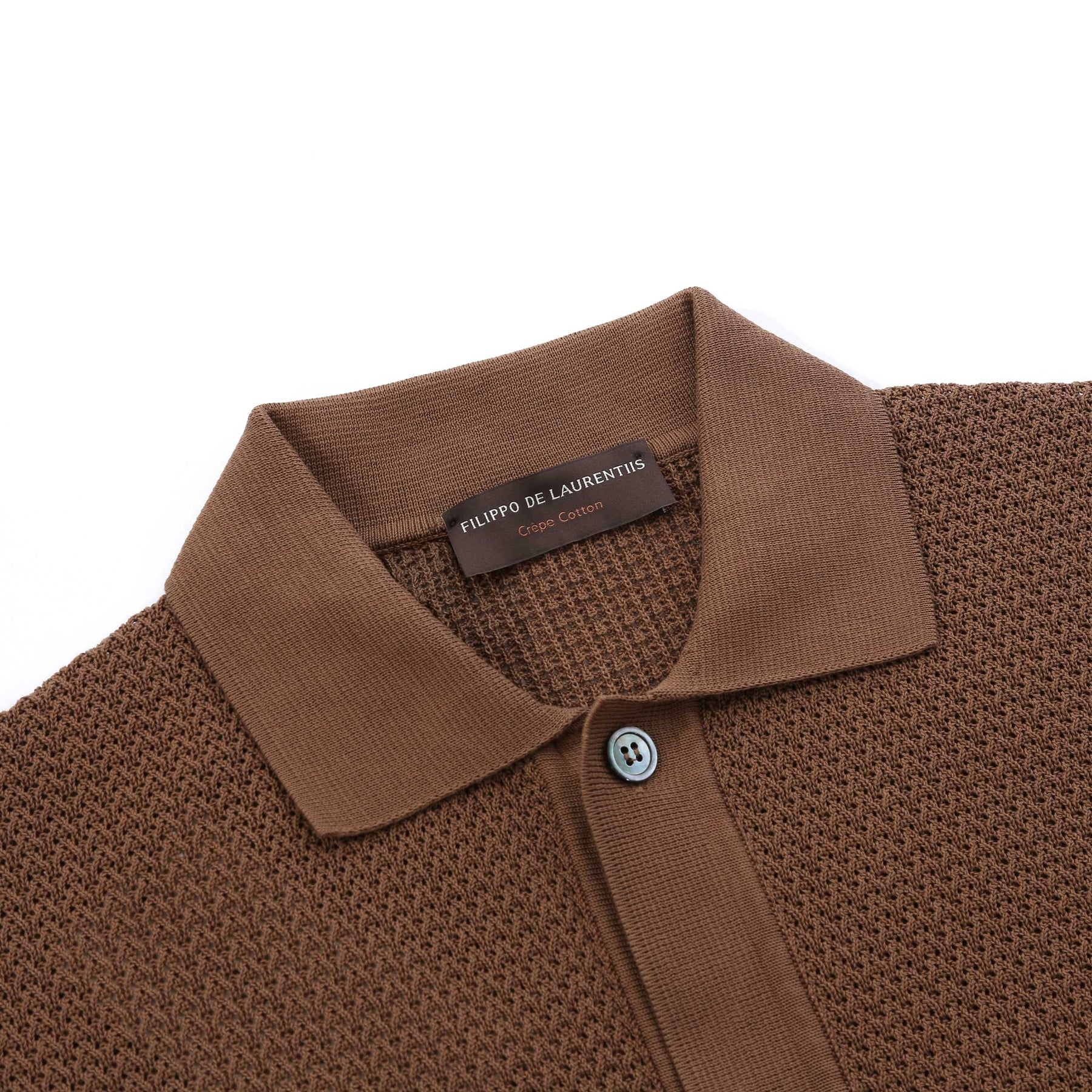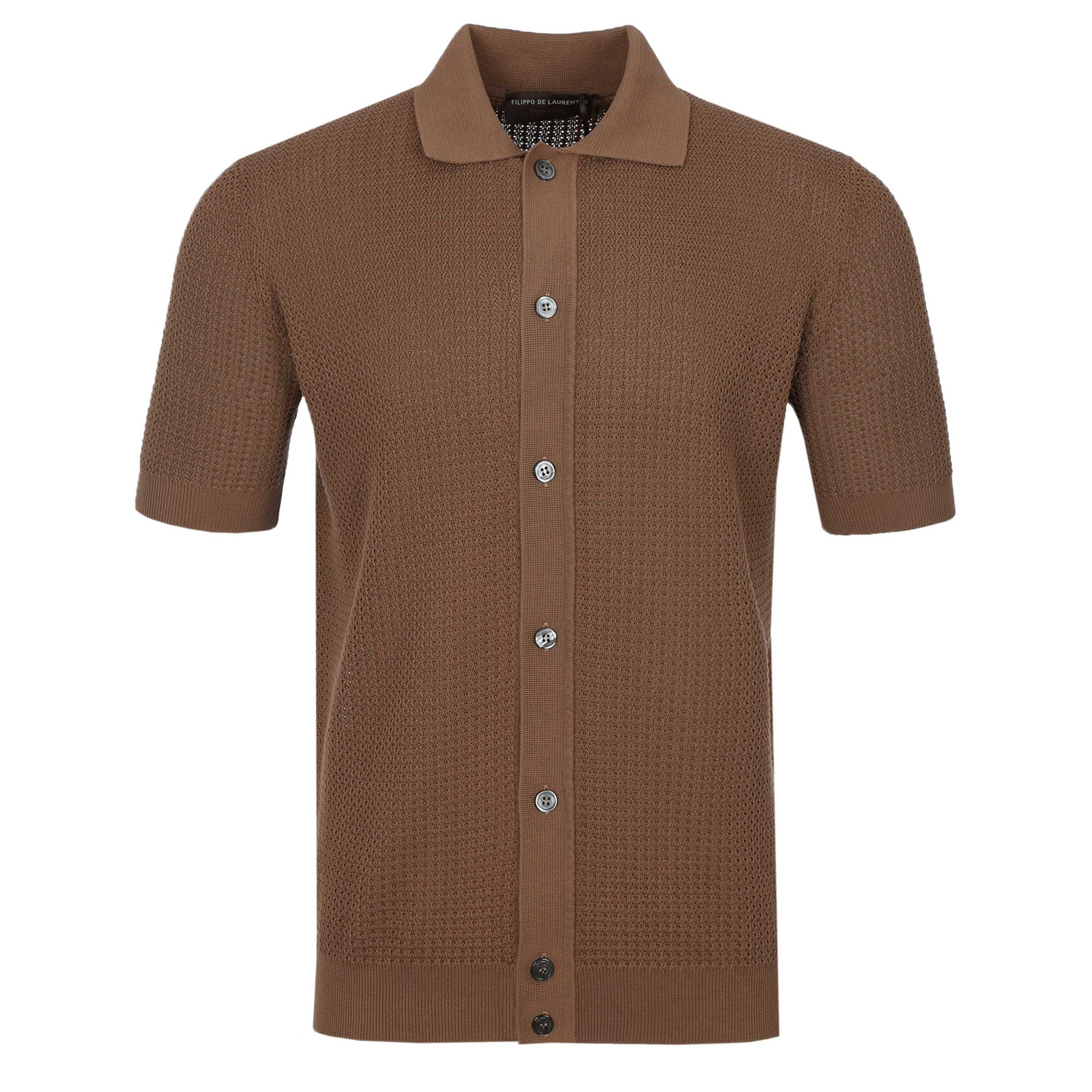 Filippo De Laurentiis Crepe Cotton Button Thru SS Shirt in Brown