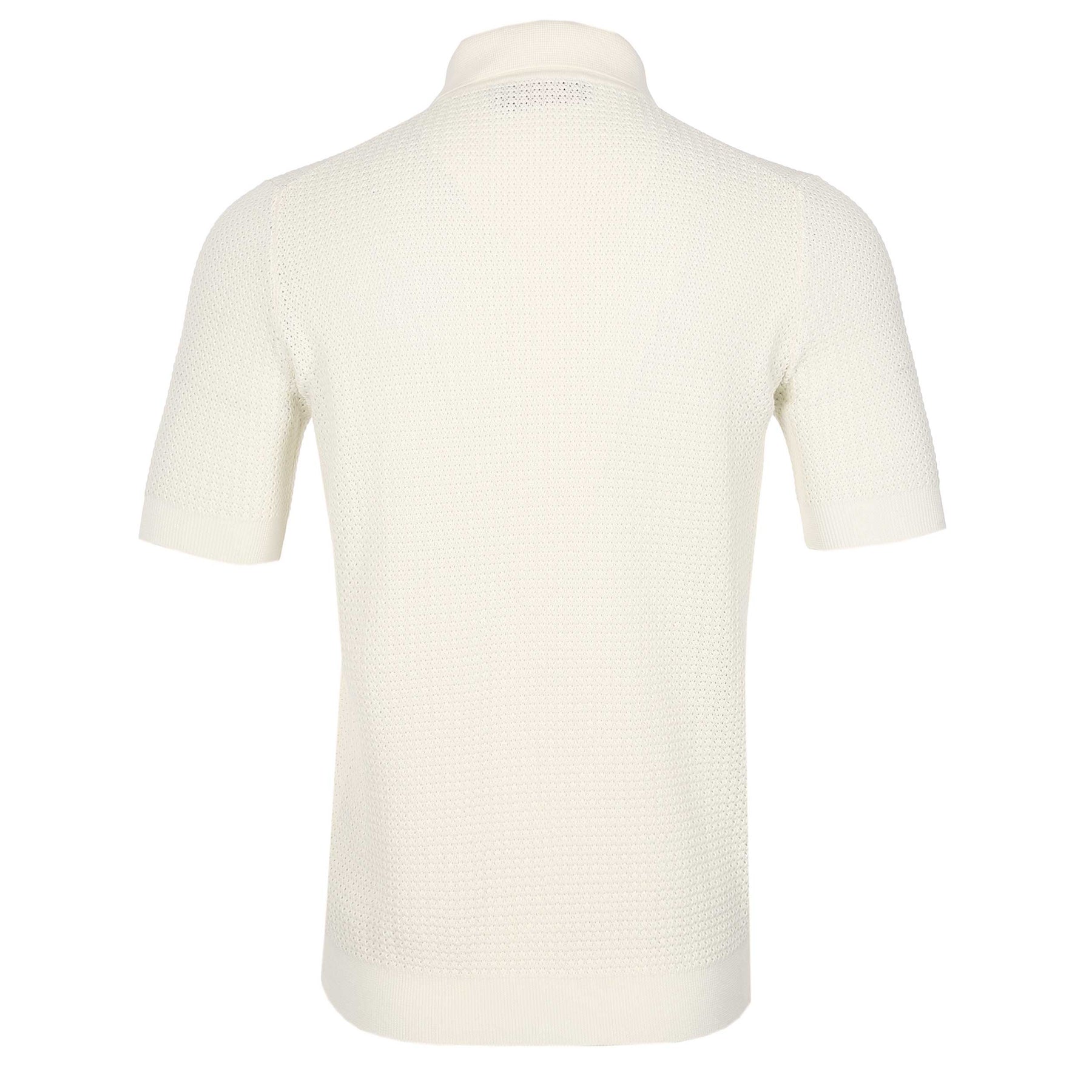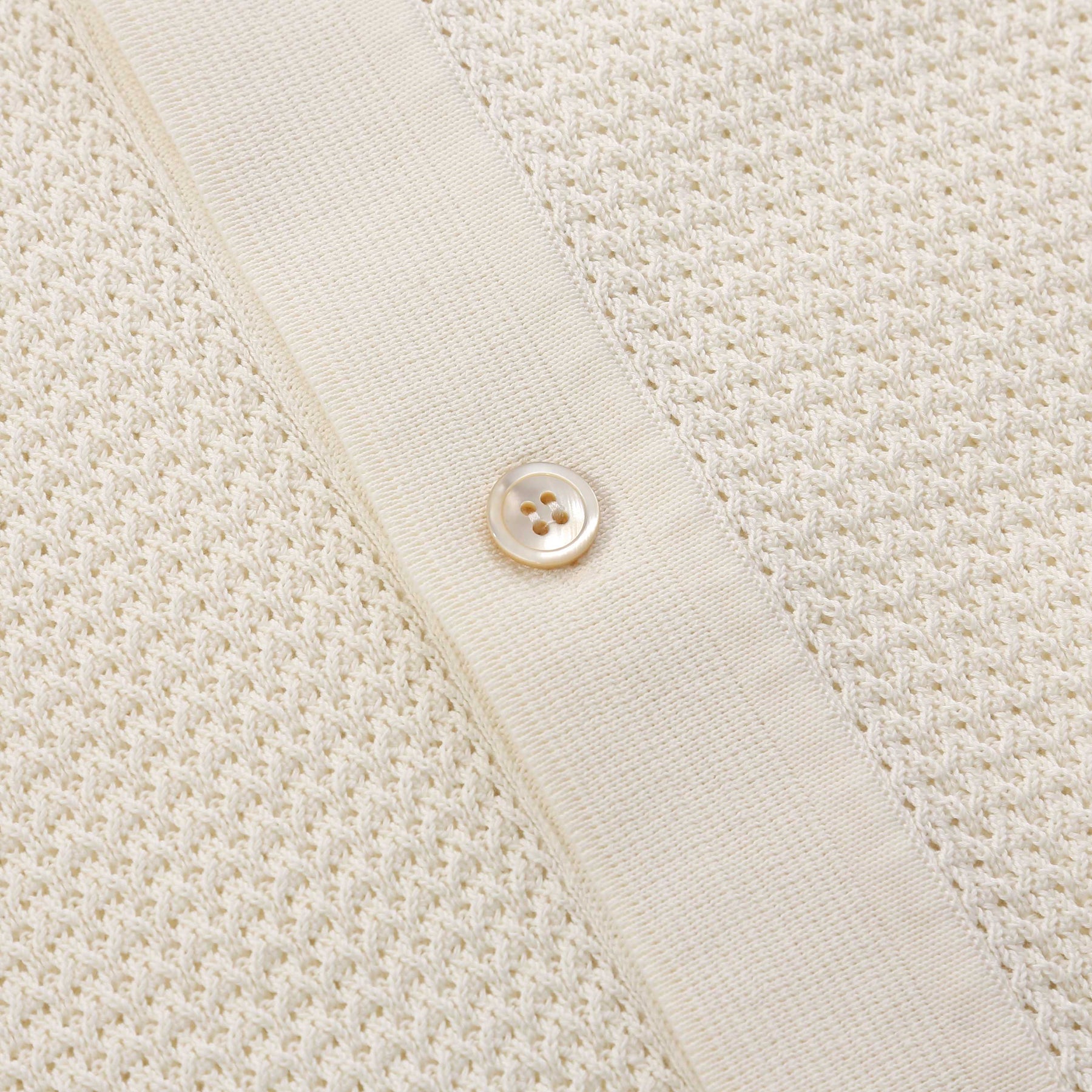 The design features a three button placket adorned with exquisite iridescent mother of pearl buttons, enhancing the polo's elegant aesthetic. Ribbed detailing at the collar, cuffs, and waistband not only adds a touch of modernity but also ensures a comfortable fit. This knitwear is perfect for layering or wearing on its own, making it a staple in your fashion lineup.