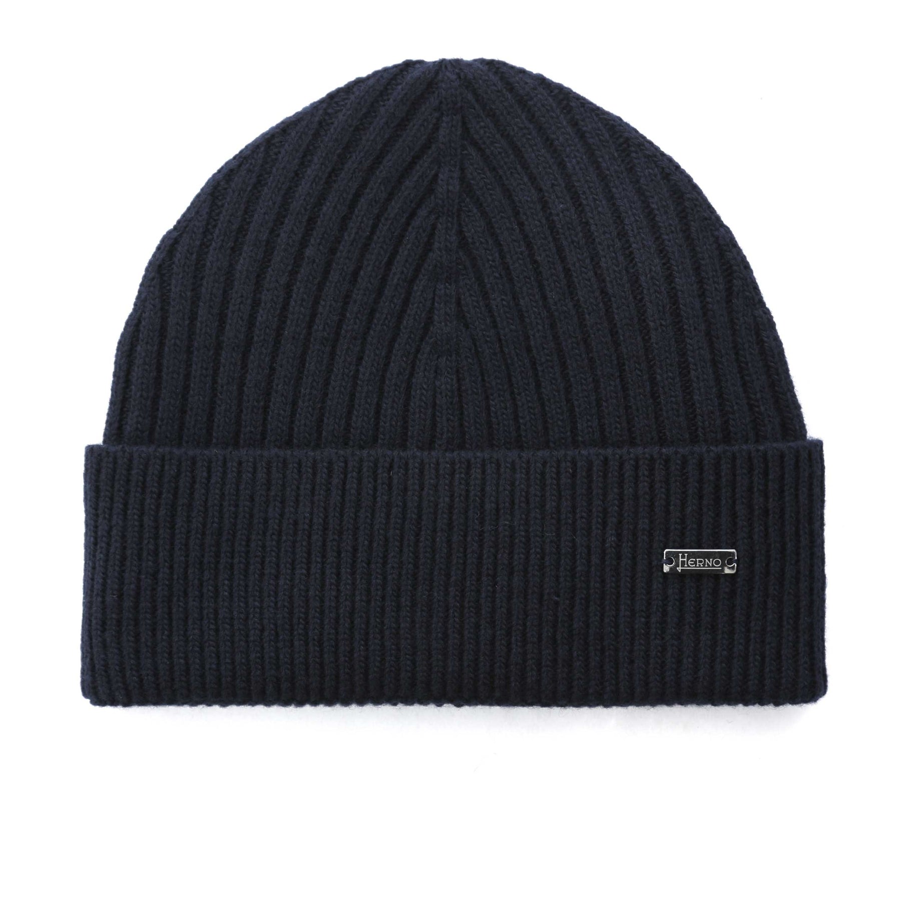 Herno Beanie A Coste In Lana Beanie Hat in Navy