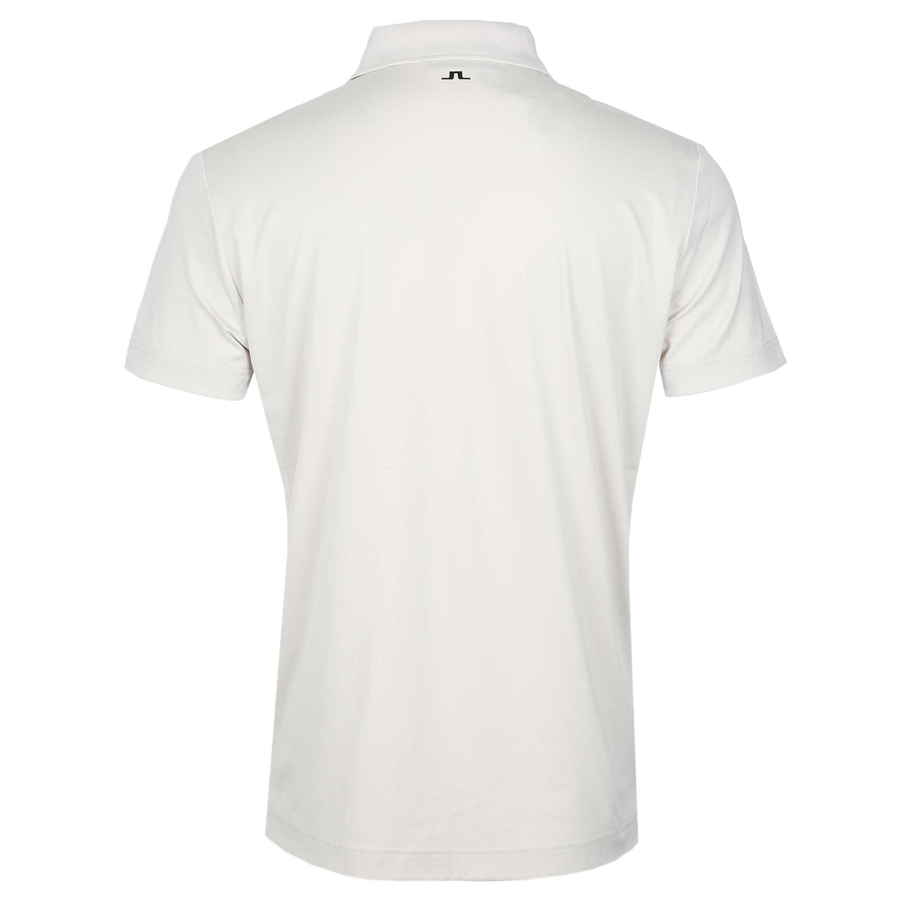 J.Lindeberg Klas Polo Shirt in Moonbeam. A regular fit polo shirt by J.Lindeberg. This polo shirt is constructed from a stretchable TX jersey fabric. This lightweight polo shirt has moisture-wicking technology and 4 way stretch properties. Printed tramline to the chest with the J.Lindeberg bridge logo. 3 button fastening placket with a flat knit collar. Rubber J.Lindeberg logo to the nape of the polo shirt.