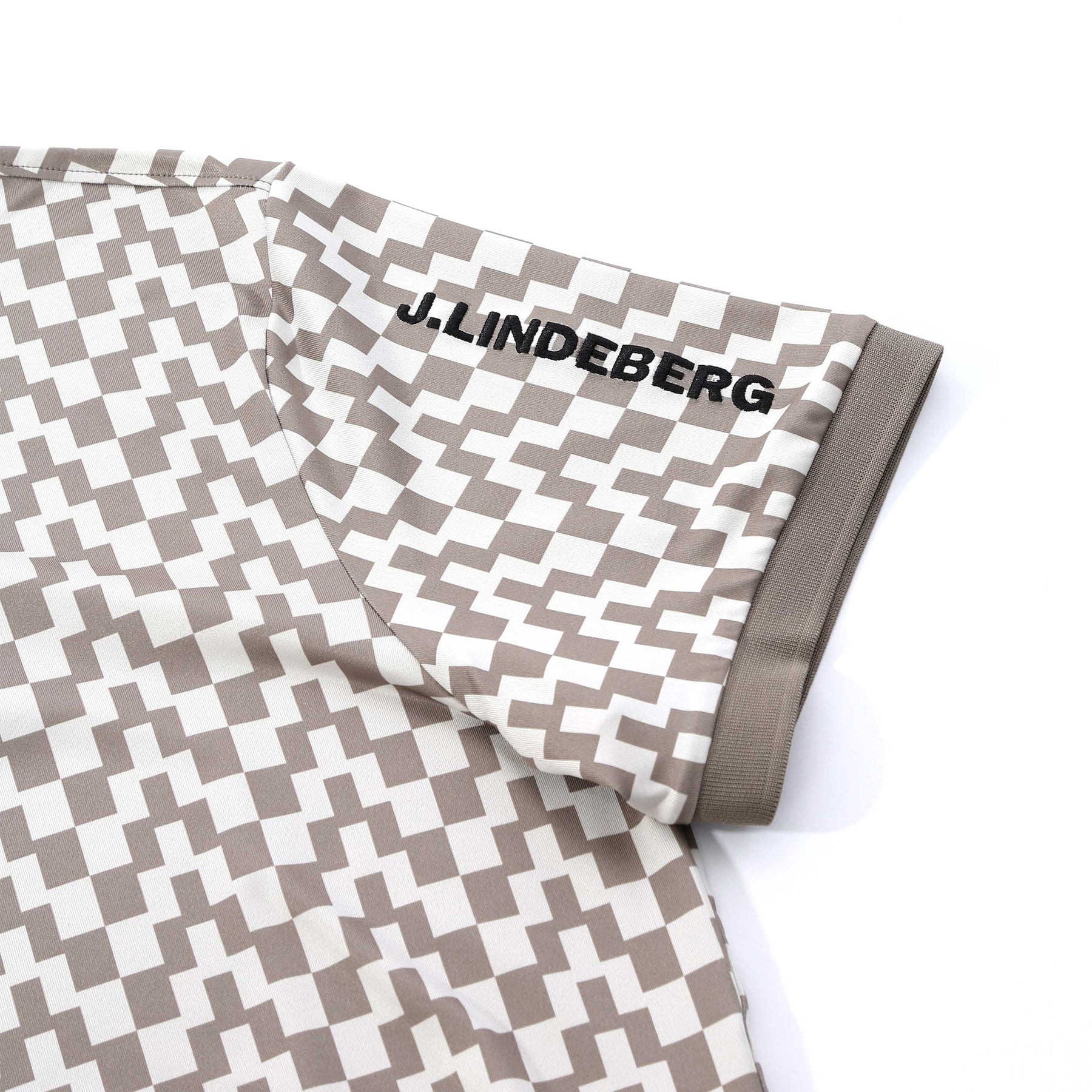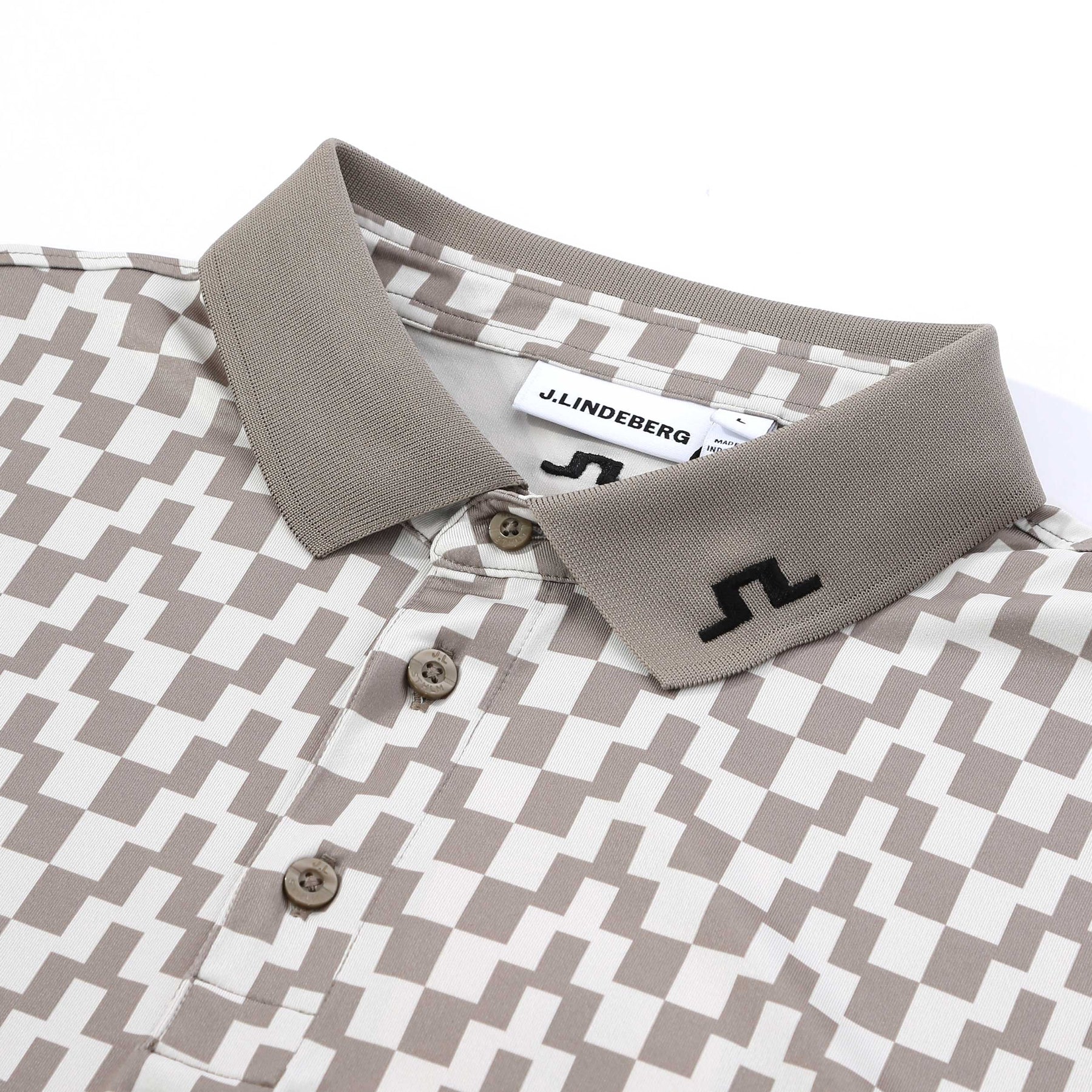 J.Lindeberg Tour Tech Print Polo Shirt in Bridge Stack Brindle