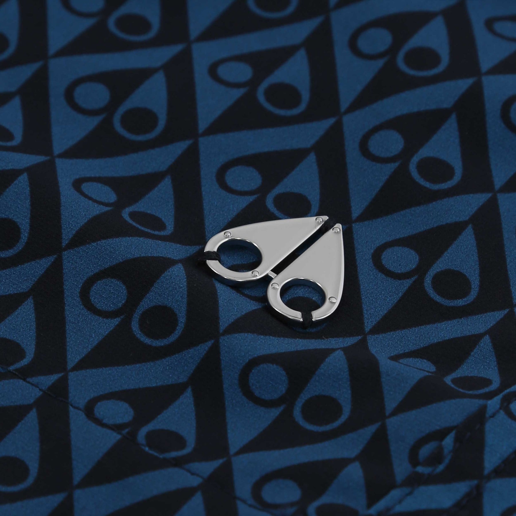 Moose Knuckles Hide And Swim Short in Navy Combo. Swim short by Moose Knuckles. Elasticated waistband with drawstring fastening. All over printed Moose Knuckles logo branding to the swim short. Moose Knuckles logo badge to the leg. Two front slash pockets. Zip pocket to the seat. Matching short sleeve shirt available.
