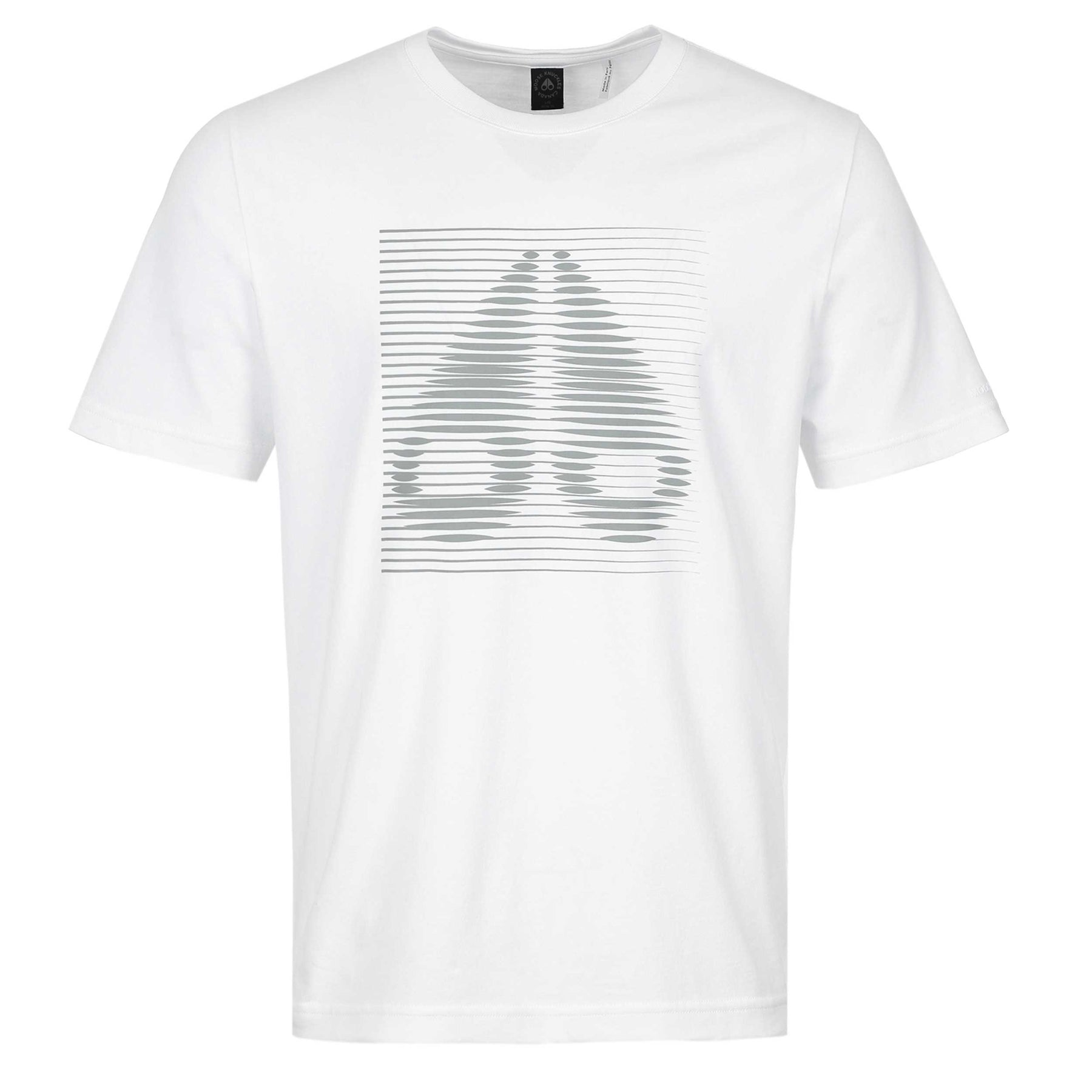 Moose Knuckles Raydaze Tee T-Shirt in Milky Way. A classic t-shirt by Moose Knuckles. This t-shirt has short sleeves and a crew neck. It is designed with a printed, distorted Moose Knuckles logo on the front and tonal Moose Knuckles branding on the sleeve.