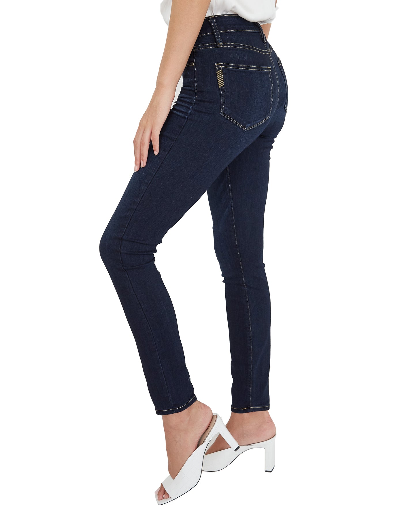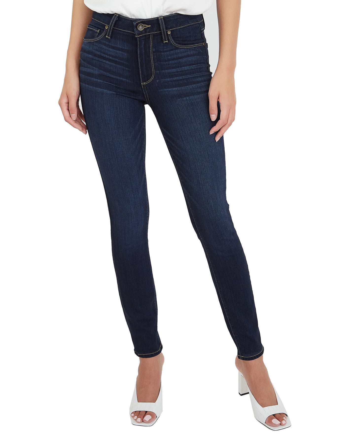 Paige Ladies Hoxton Ankle Jean in Koda Blue Denim. Exuding timeless elegance and designed for daily sophistication, this high-rise ankle-length skinny is a wardrobe essential. Presented in one of our perennially popular dark washes, this style is meticulously crafted from our renowned TRANSCEND denim in a deep, rich blue hue. Experience the epitome of luxury as this denim boasts an irresistibly soft texture and unparalleled comfort, thanks to its generous stretch and recovery. From the break of dawn to the glow of the moonlight, enjoy a flawless fit that ensures comfort throughout the day.