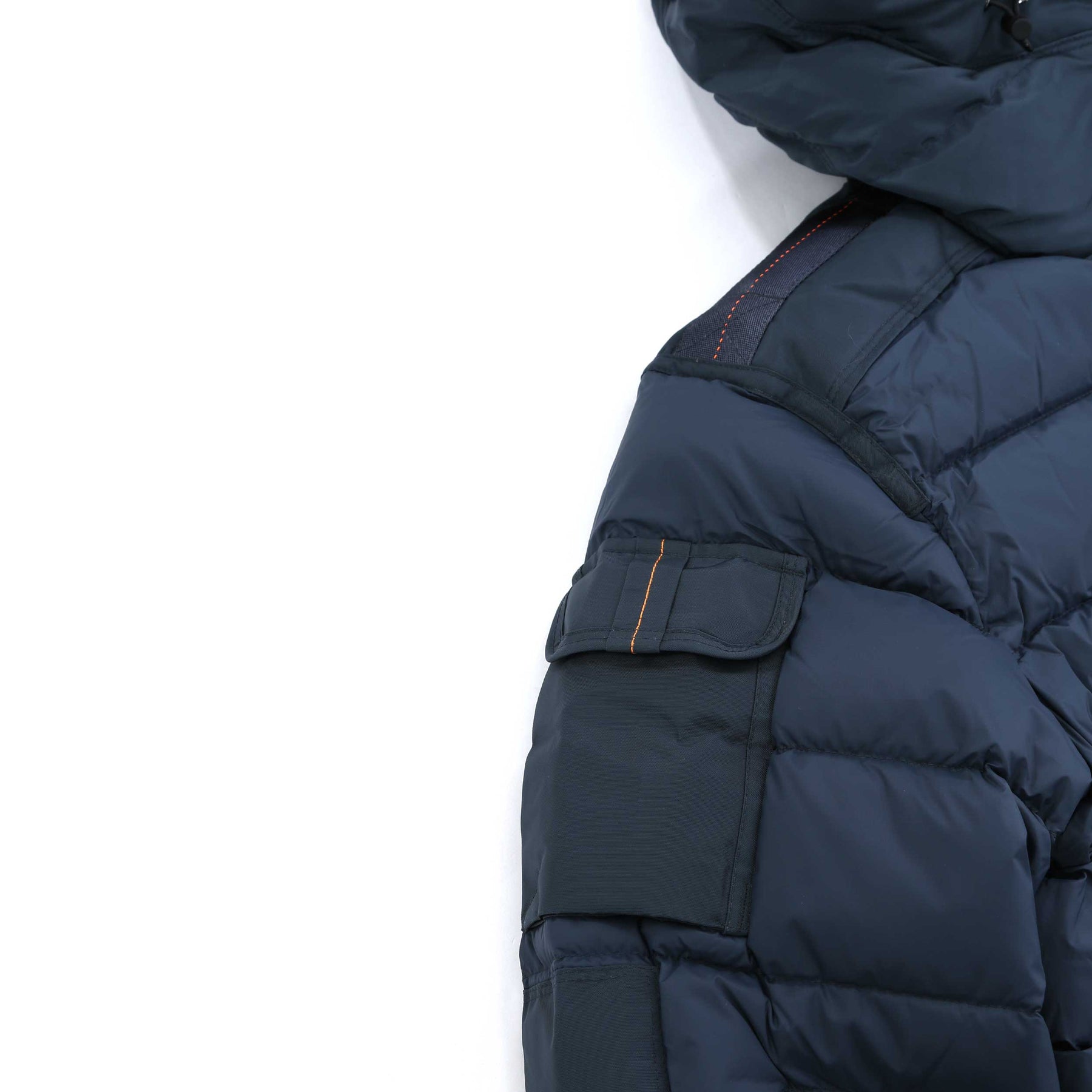 Parajumpers Skimaster Jacket in Dark Avio. A classic jacket by Parajumpers. This ski jacket is designed with a drawstring hood and lightweight fabric. This jacket is also both water and wind proof, perfect for skiing and the outdoors. With multiple pockets on both the front and sleeves, with an interior pocket too. Finished with a Parajumpers logo badge on the left sleeve.