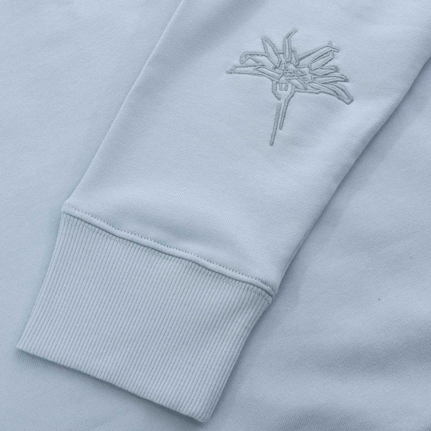 Paul Smith Half Zip Collar Sweat Top in Sky Blue. A sweat top by Paul Smith. Featuring long sleeves and a half zip fastening. Sweat top with a classic polo style collar. Tonal zebra logo badge to the waist. Embroidery detailing to the left cuff. Finished with a ribbed waistband and cuffs.