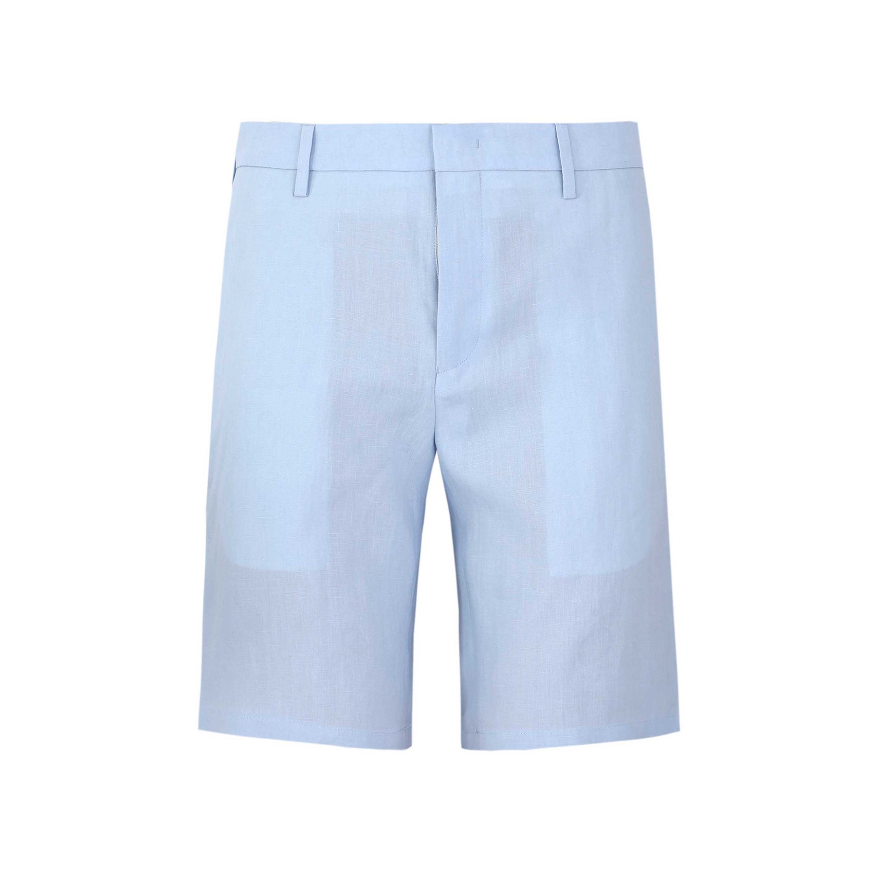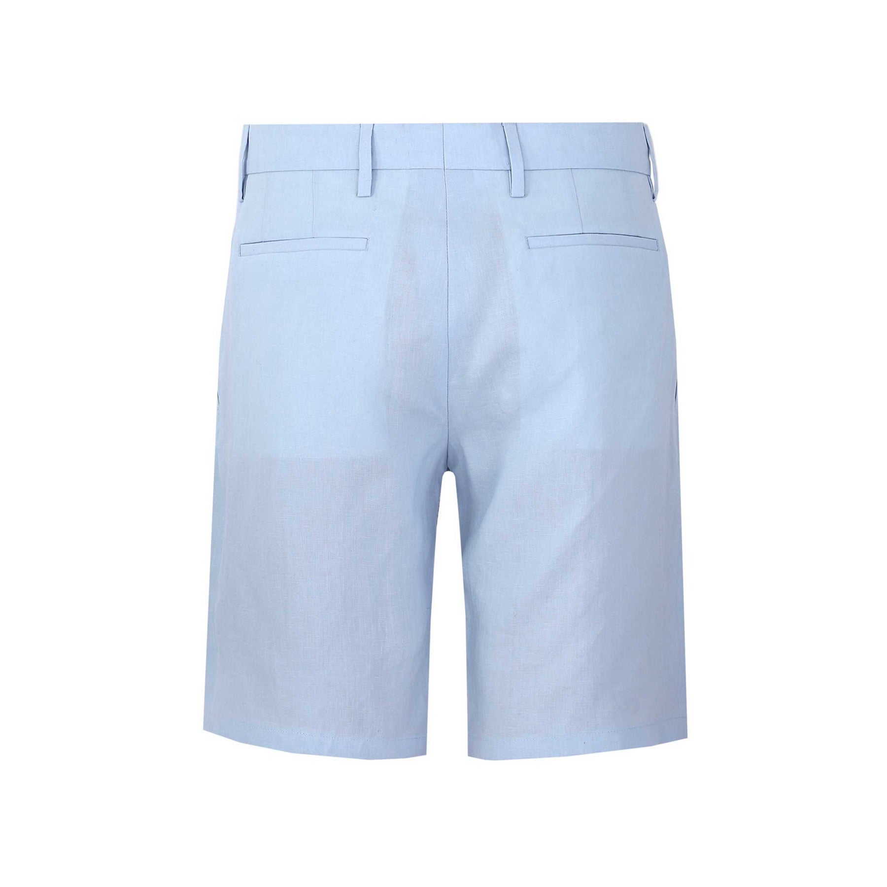 Paul Smith Linen Short in Sky Blue. A classic style short with a regular rise waistband. Constructed from 100% linen. Hook and zip fastening. 2 side slit pockets, 2 welt pockets on the back. Perfect addition to any wardrobe. Team up with either a polo or shirt.