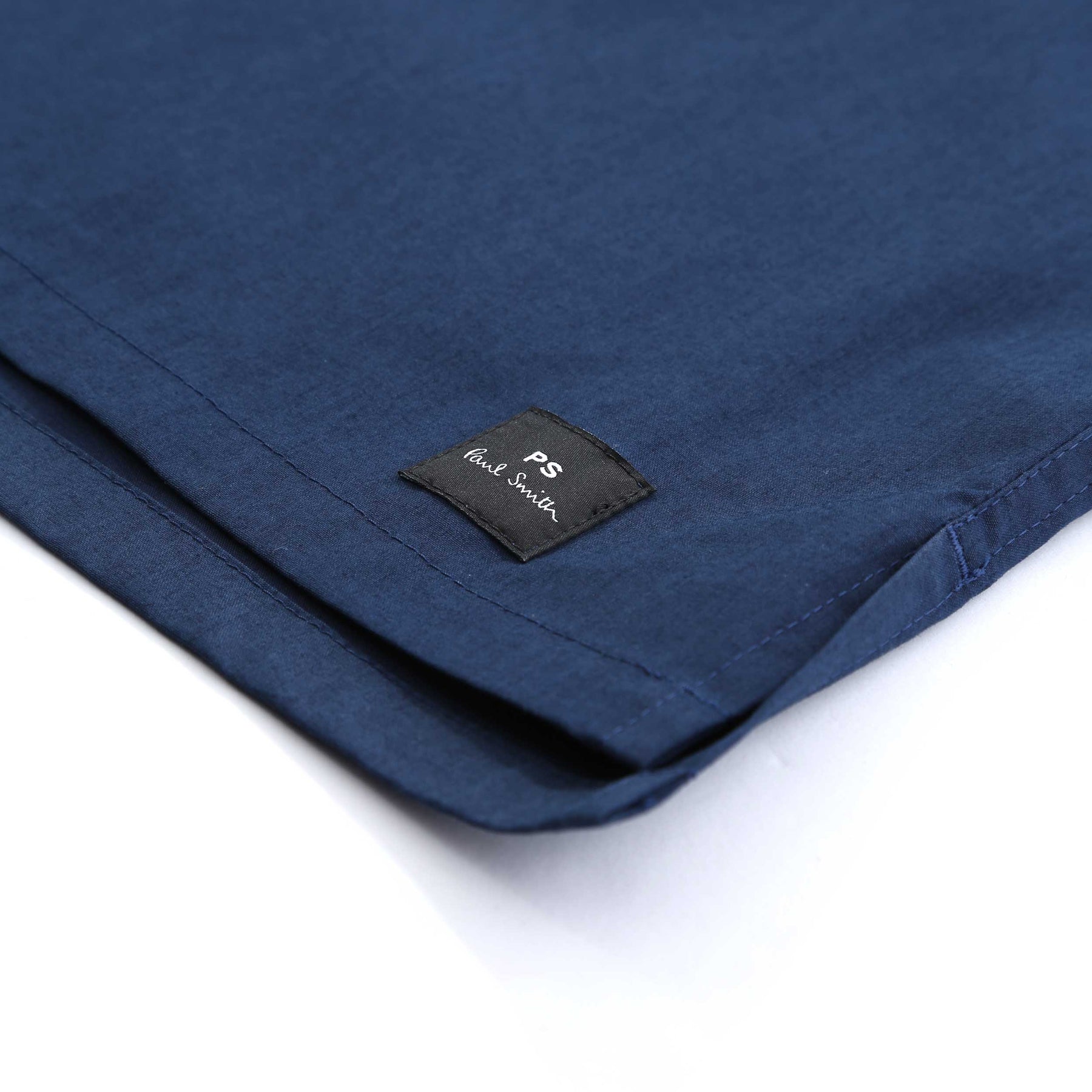 Paul Smith Patch Pocket Shirt Jacket in Navy. A shirt Jacket 'shacket' by Paul Smith. Full button fastening placket with classic collar. 2 patch pockets to the chest with button fastening. Paul Smith logo tab to the waist. Buttoned cuffs. A must have for any wardrobe which can be worn from day time to evening.