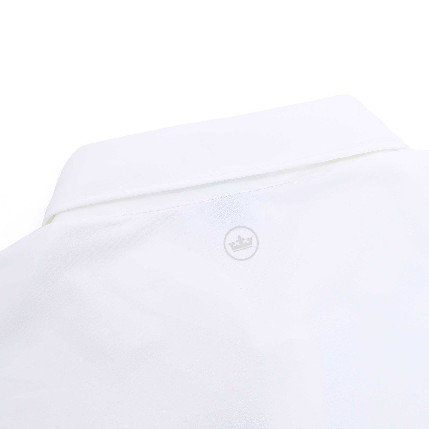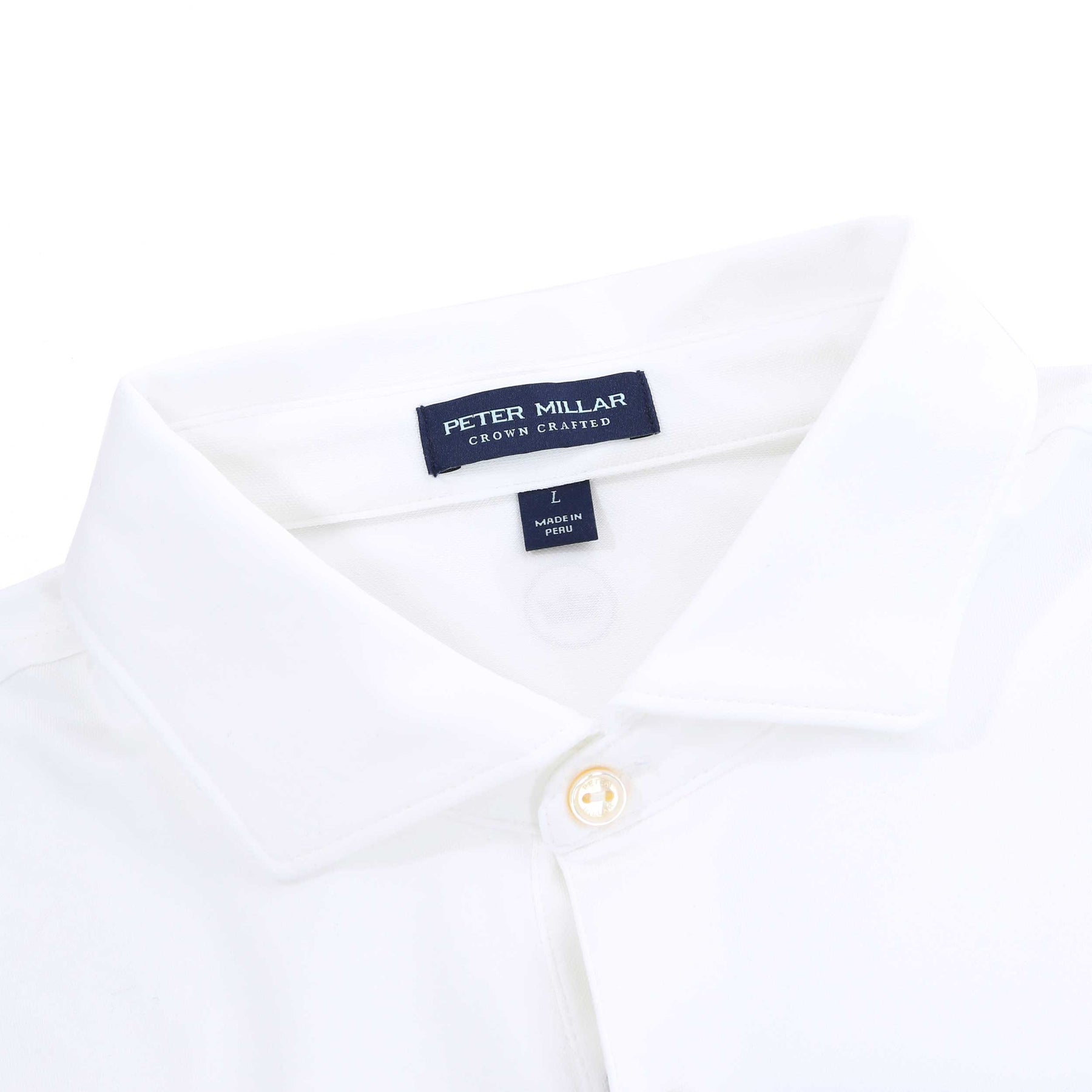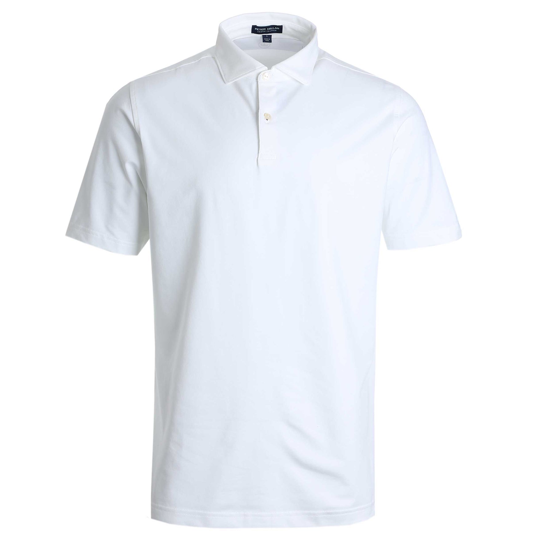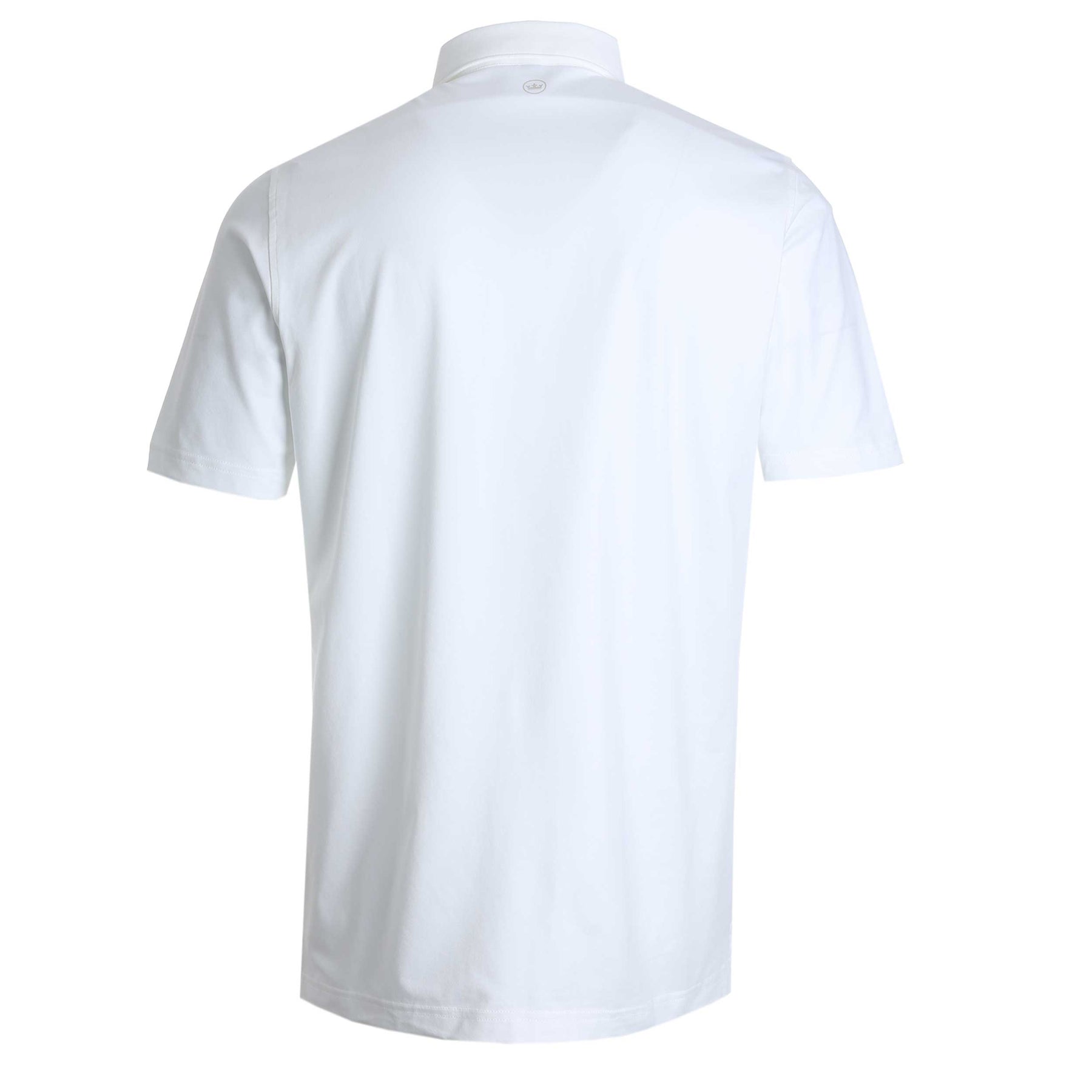 Peter Millar Albatross Polo Shirt in White. Polo shirt by Peter Millar. This short sleeve polo shirt comes with a soft cut away polo style collar. It features a 2 button fastening placket with branded mother of pearl buttons. A plain design polo crafted from a cotton blend. Subtle print Peter Millar logo to the nape of the polo shirt.