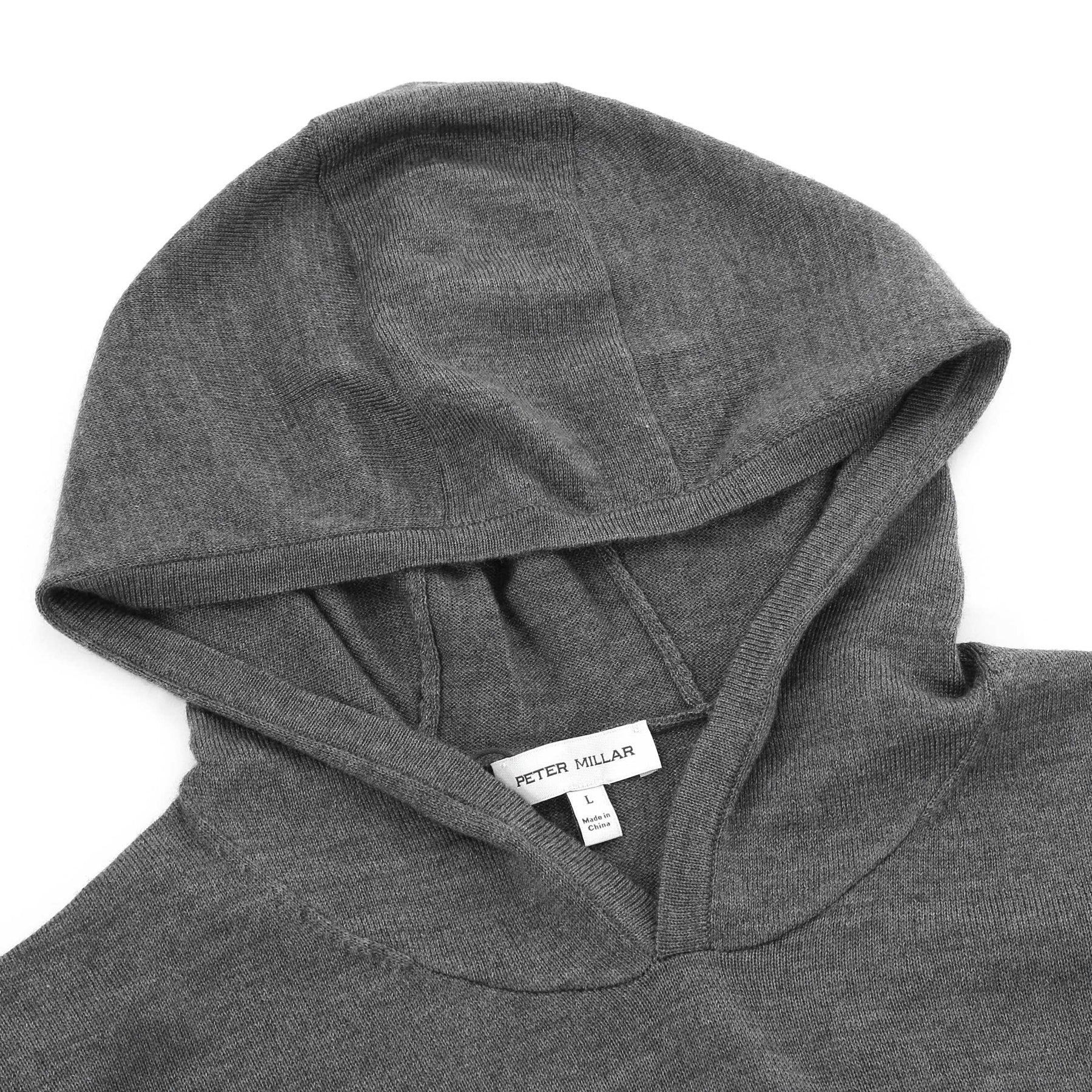 Peter Millar Autumn Crest Hoodie Knitwear in Charcoal. The Peter Millar Autumn Crest Hoodie is a modern essential crafted for both comfort and style. Crafted from a Merino wool blend, this hoodie delivers lightweight warmth with a soft, luxurious feel that transitions effortlessly between smart and casual looks. A tailored fit knitwear with ribbed cuffs and waistband.