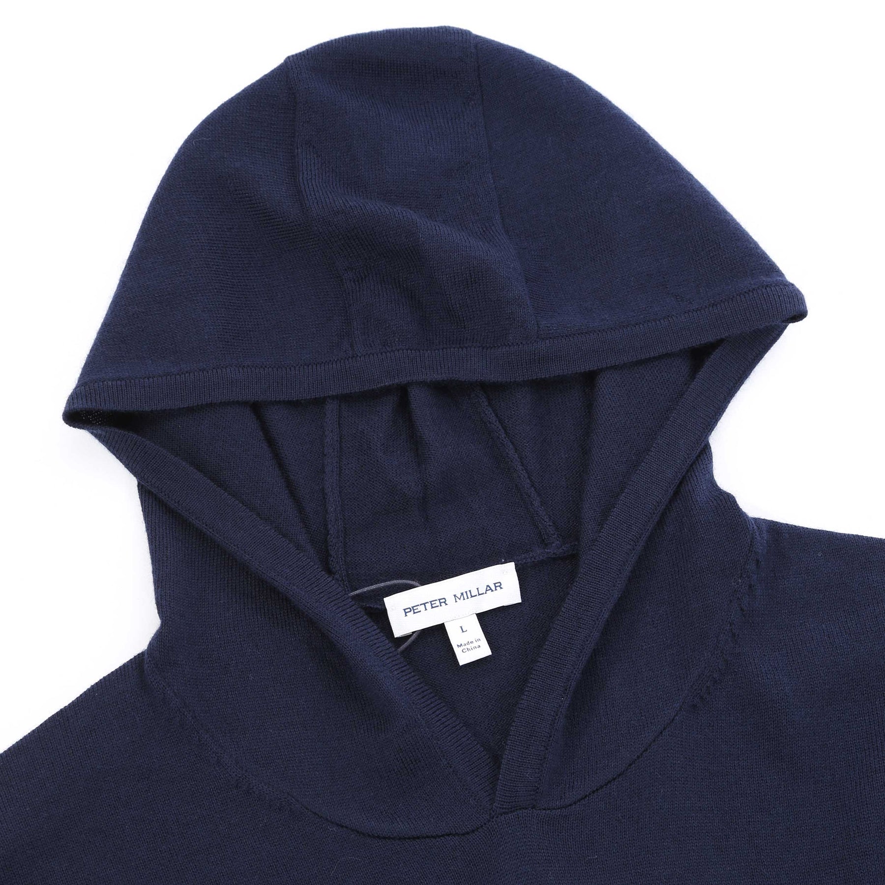 Peter Millar Autumn Crest Hoodie Knitwear in Navy. The Peter Millar Autumn Crest Hoodie is a modern essential crafted for both comfort and style. Crafted from a Merino wool blend, this hoodie delivers lightweight warmth with a soft, luxurious feel that transitions effortlessly between smart and casual looks. A tailored fit knitwear with ribbed cuffs and waistband.