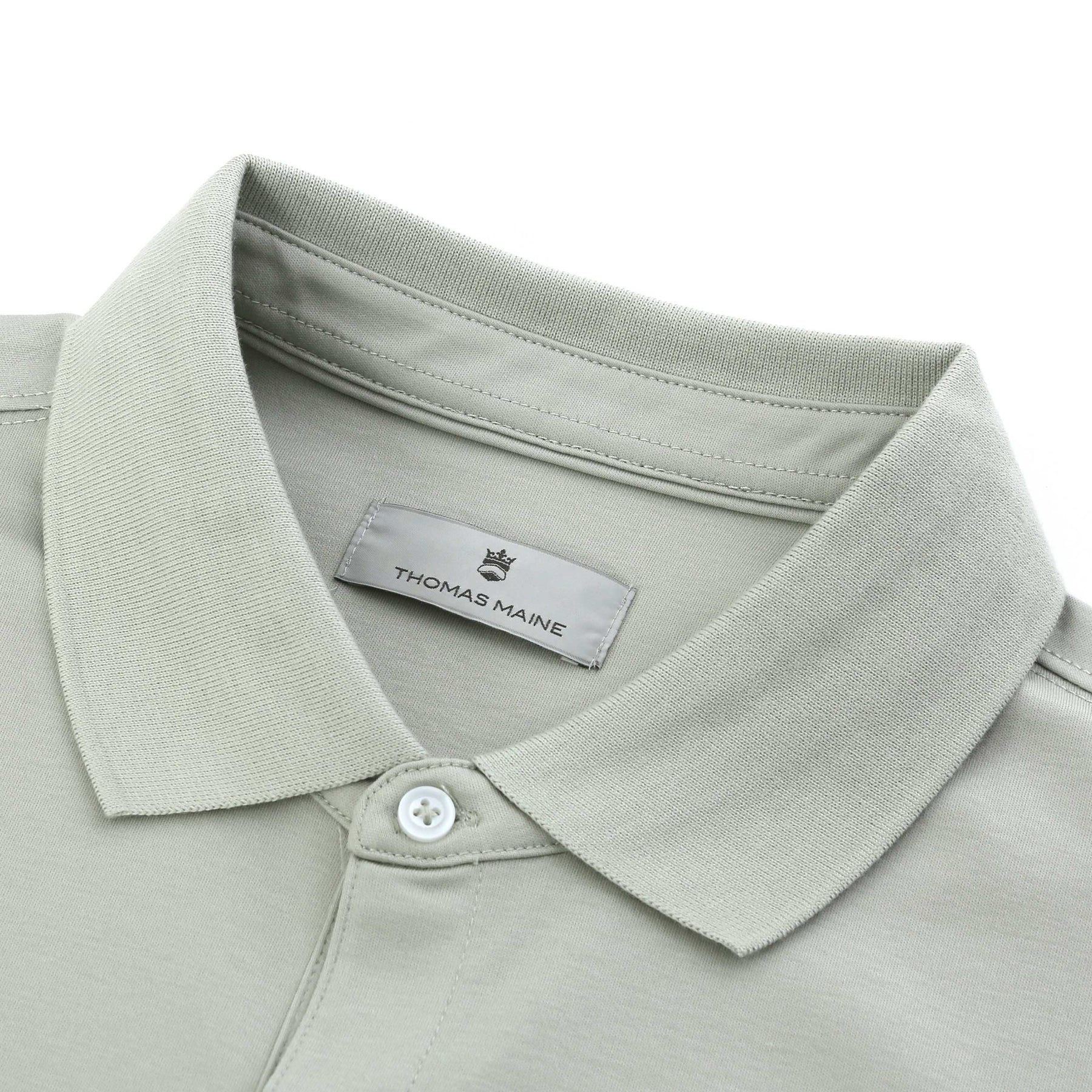 Whether you pair it with chinos for a smart-casual look or wear it with jeans for a laid-back day, the Thomas Maine Liquid Cotton 3 Button Polo Shirt in Sage Green is your go-to choice for any occasion.