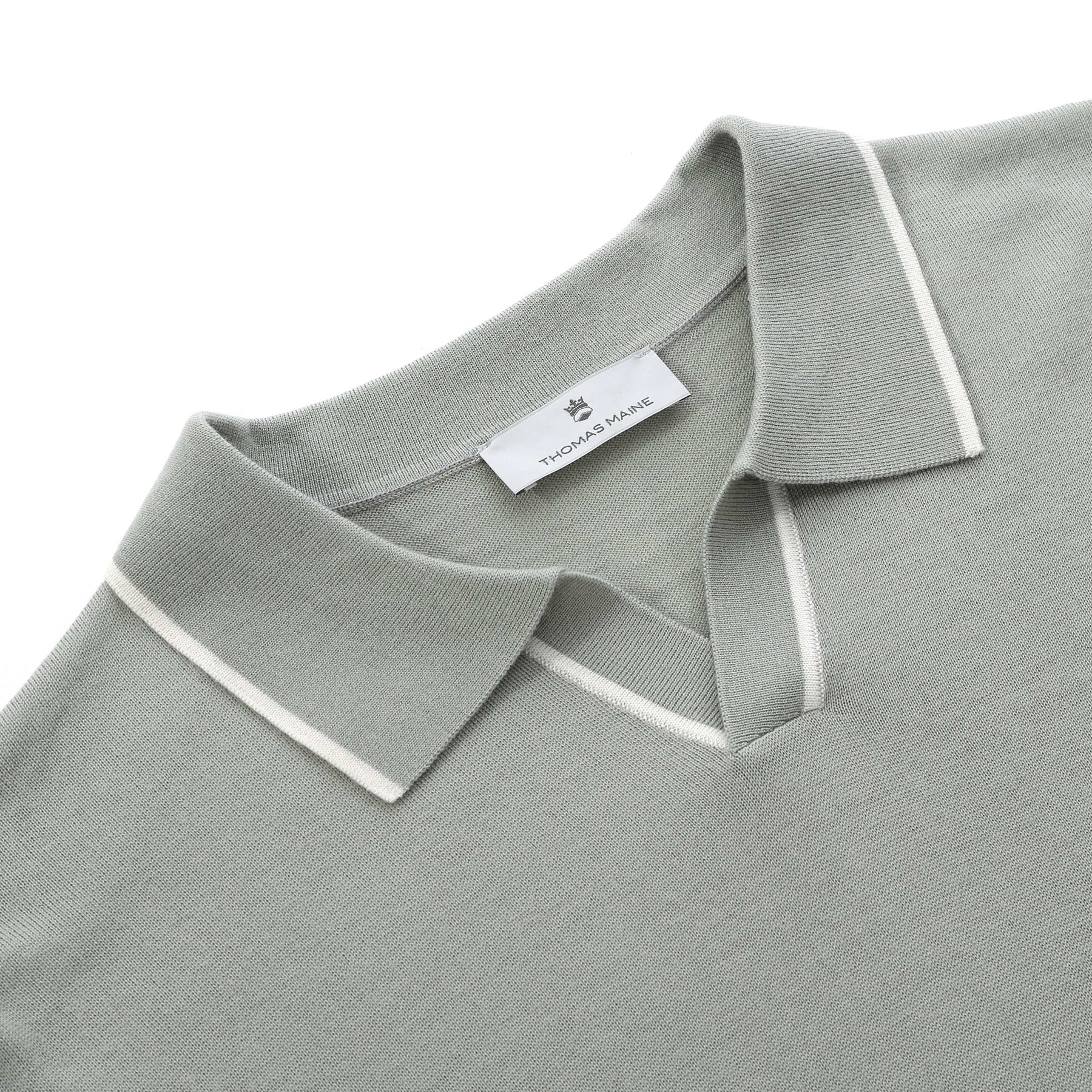 Thomas Maine Skipper Collar Trim Knitted Polo in Sage Green