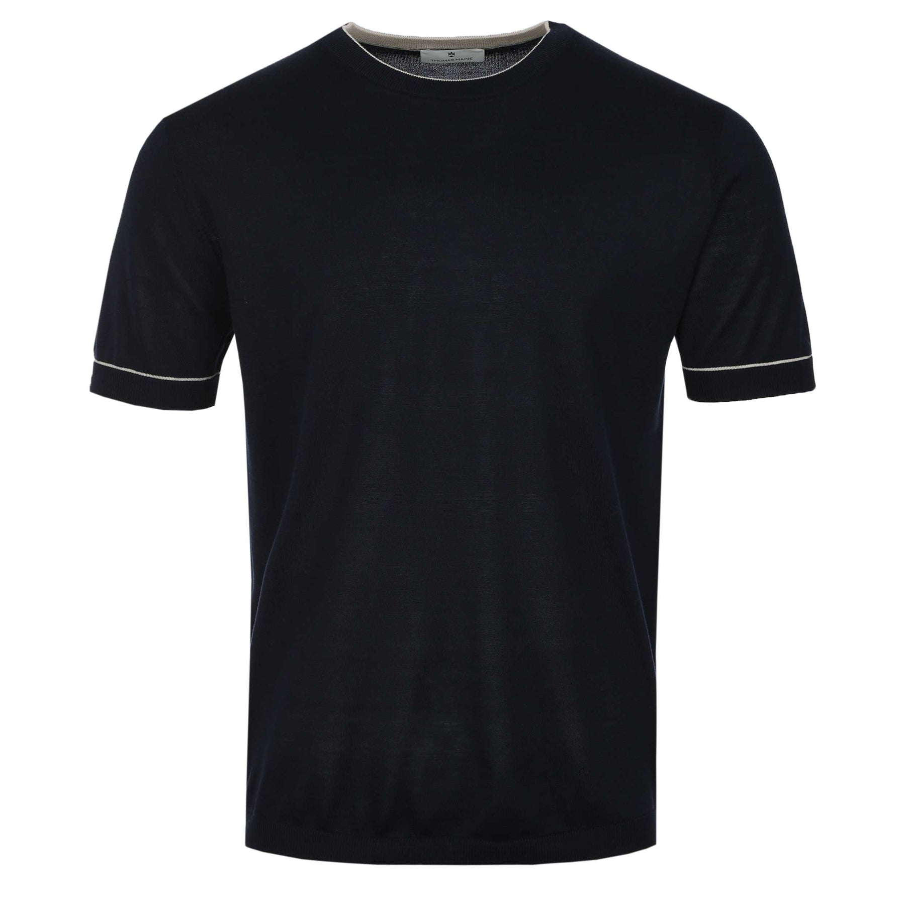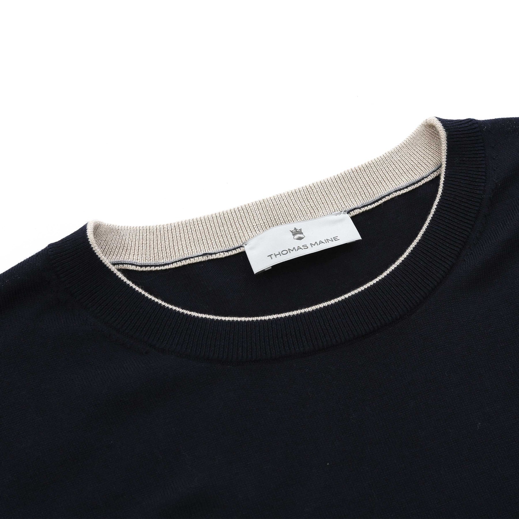 Thomas Maine Trim Detail Knitted T-Shirt in Navy Details: